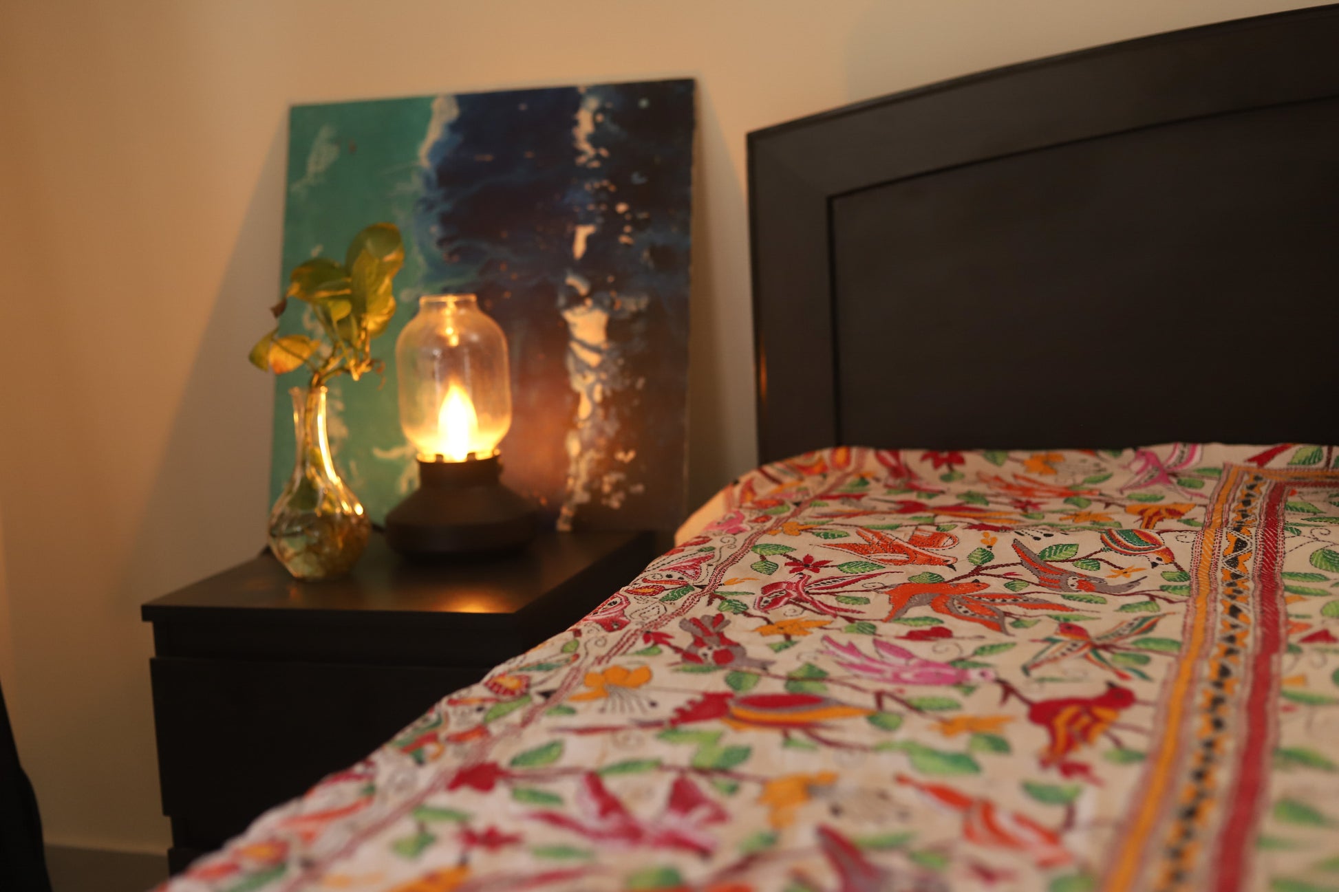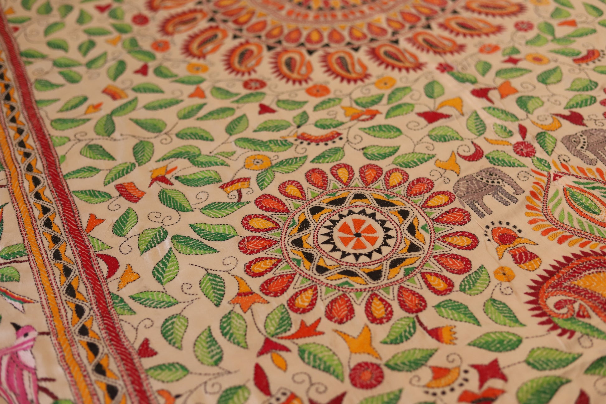 Bengal Hand Embroidered Kantha Stitch Silk Bedsheet
