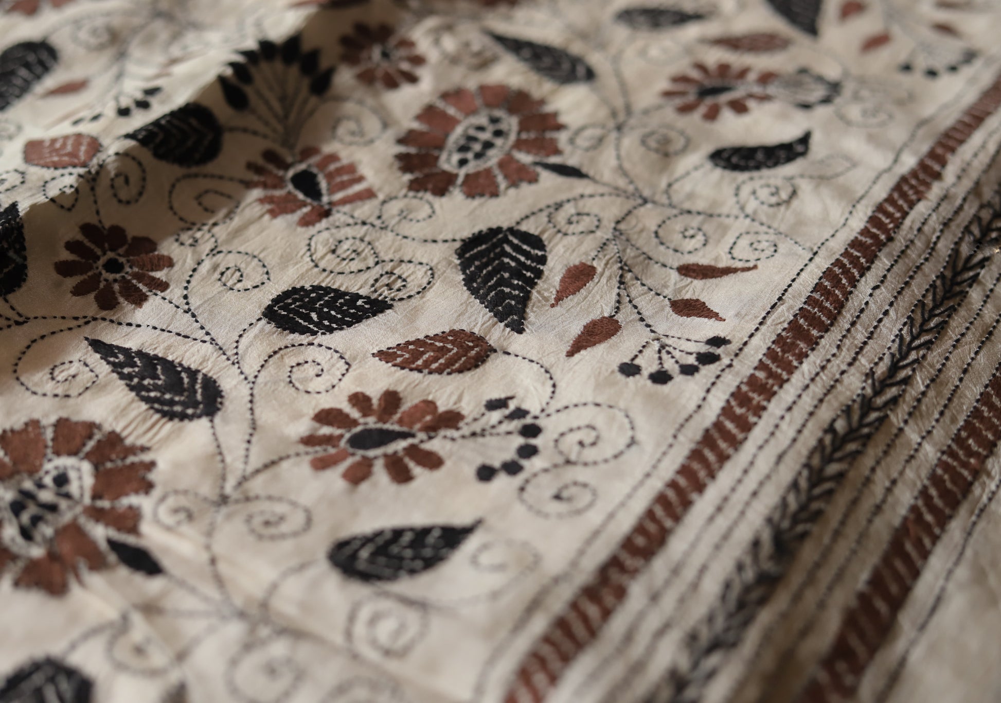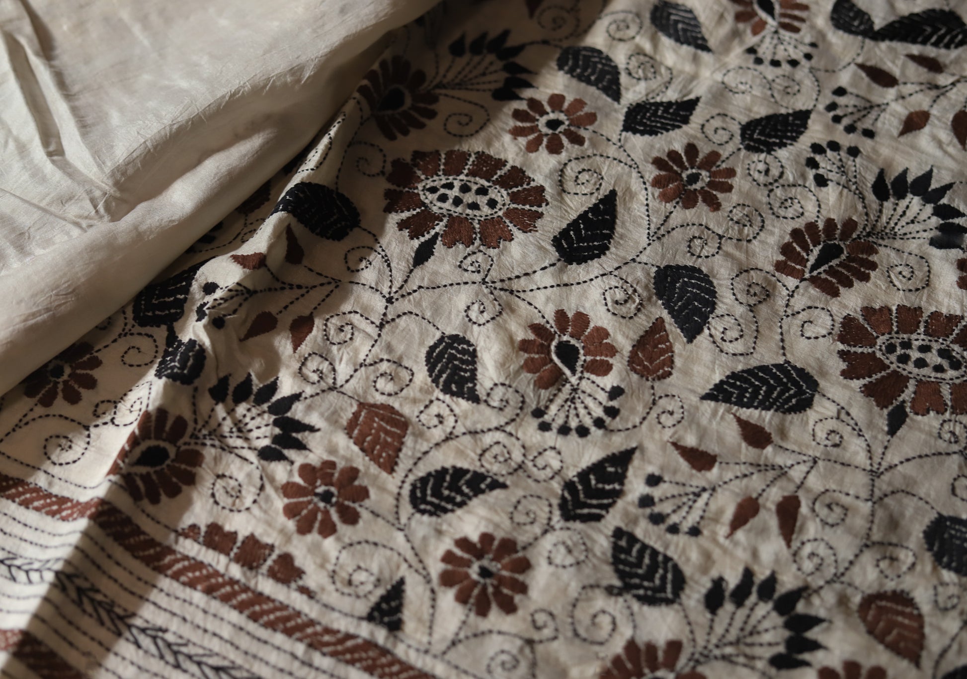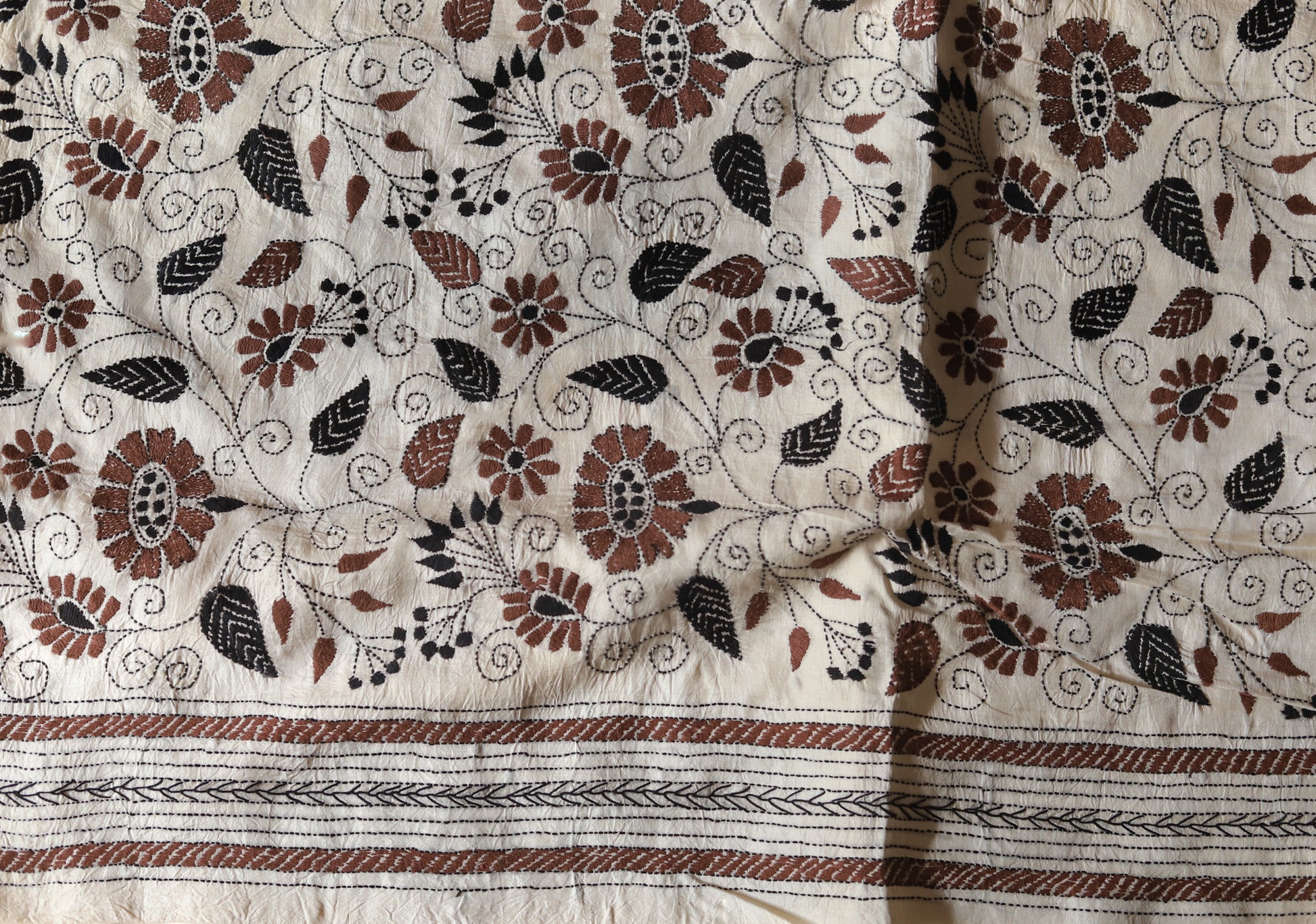 Bengal Hand Embroidery Kantha Stitch Silk Saree