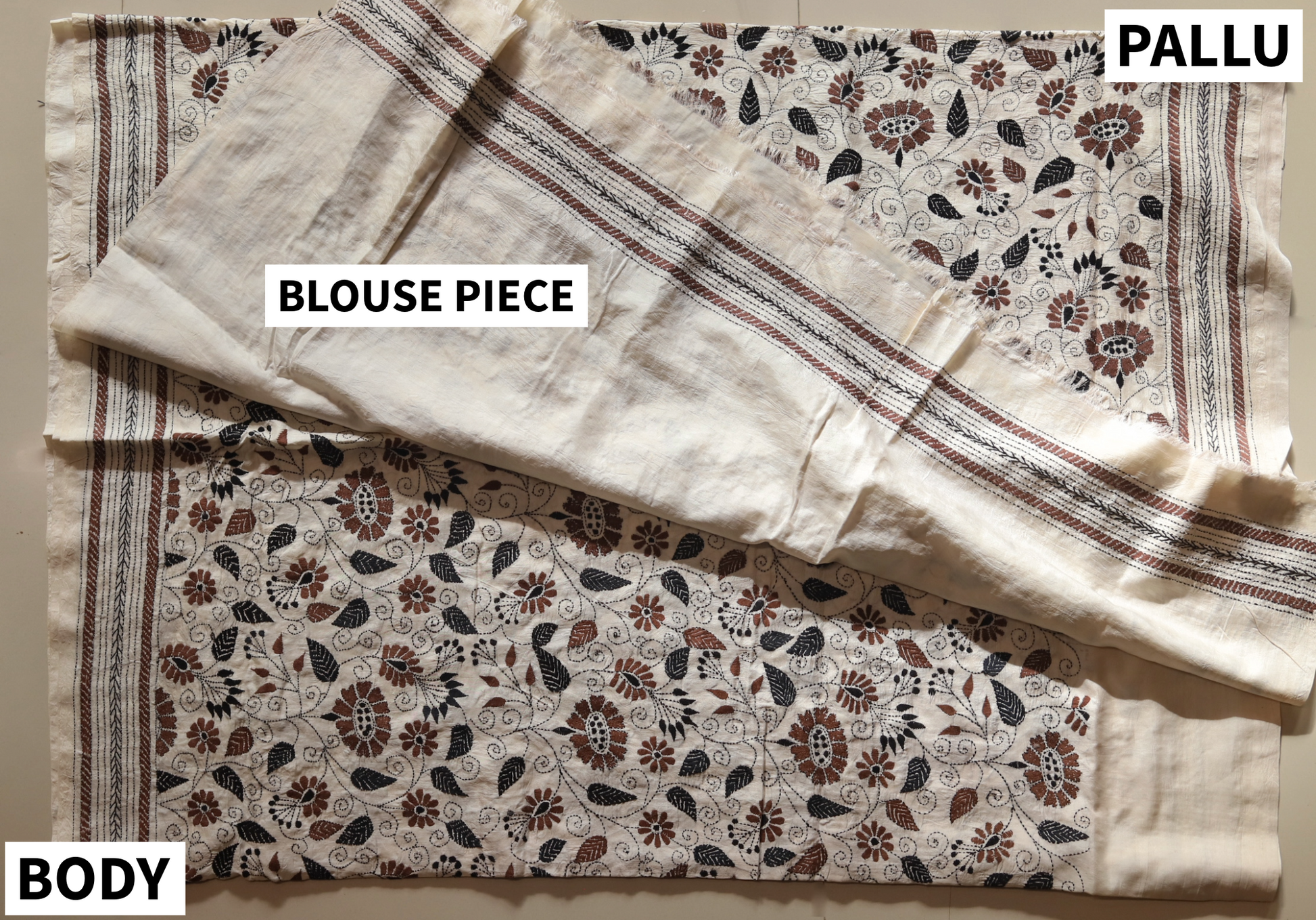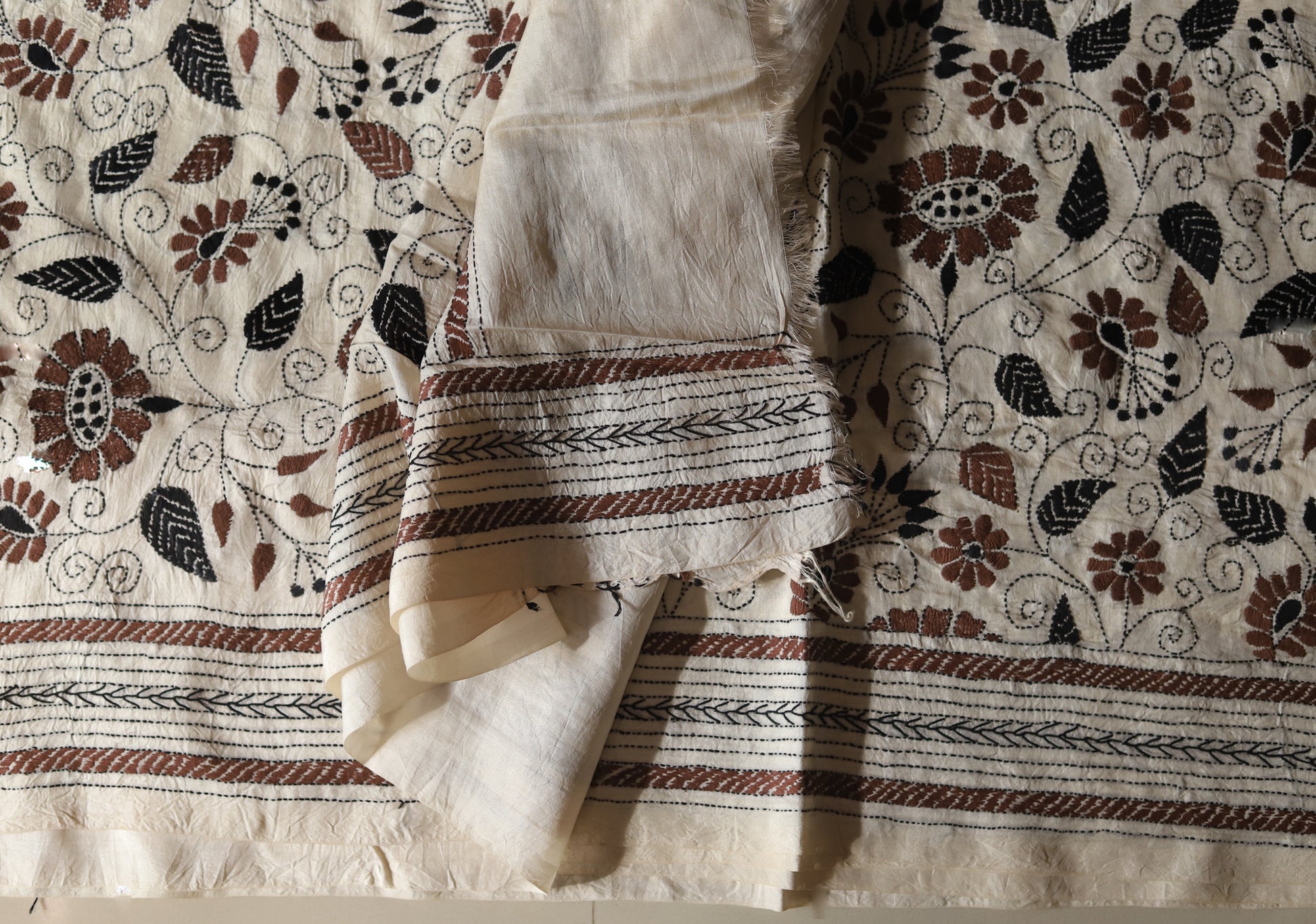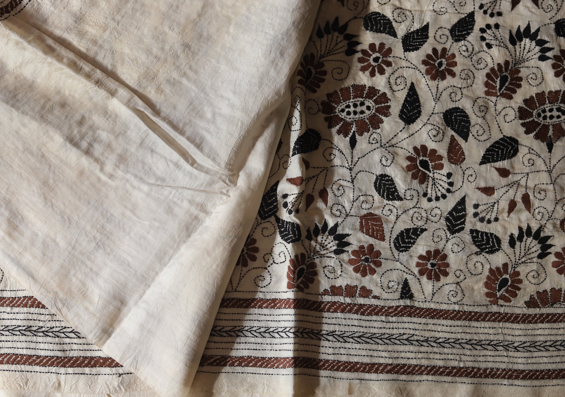 Bengal Hand Embroidery Kantha Stitch Silk Saree