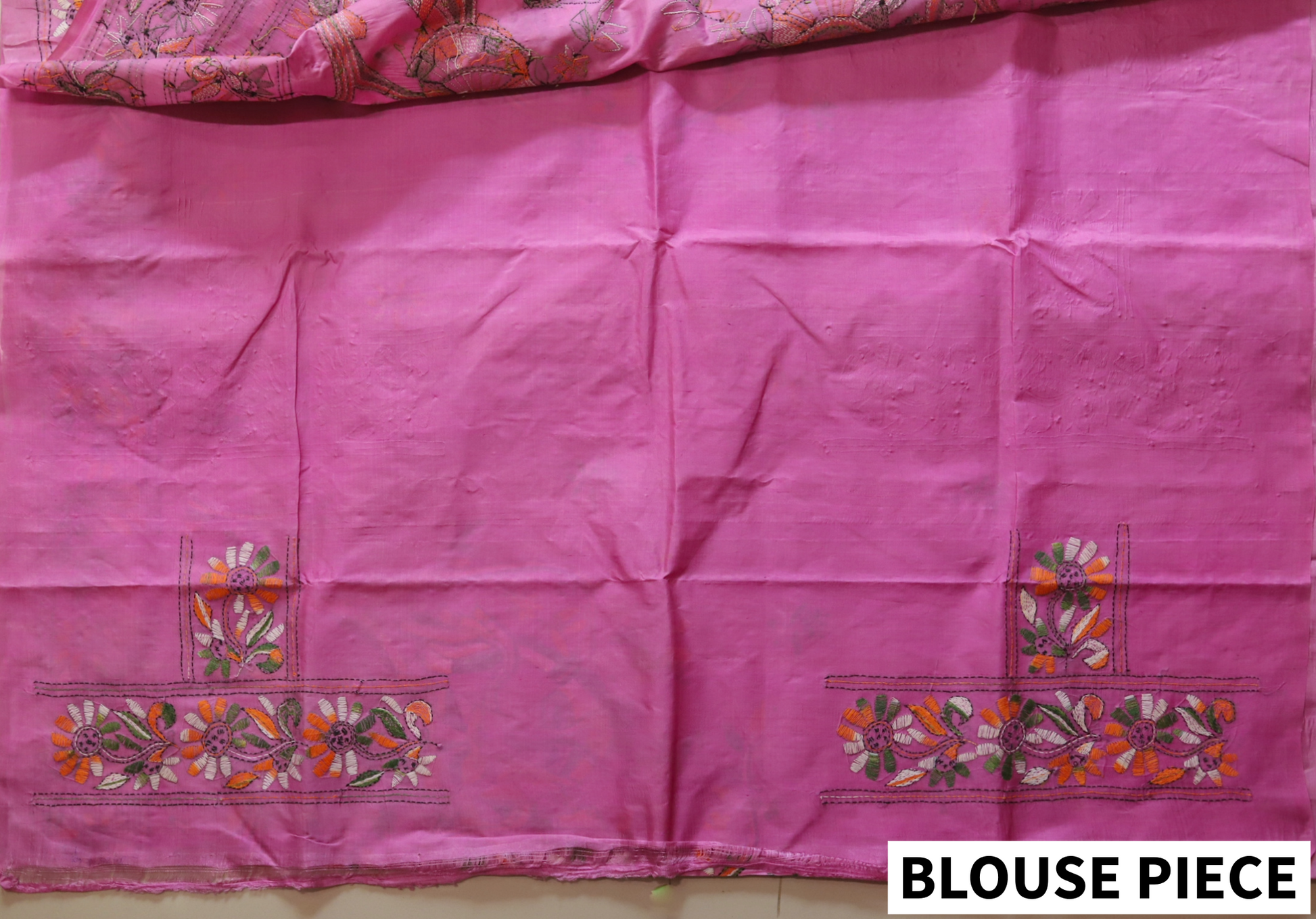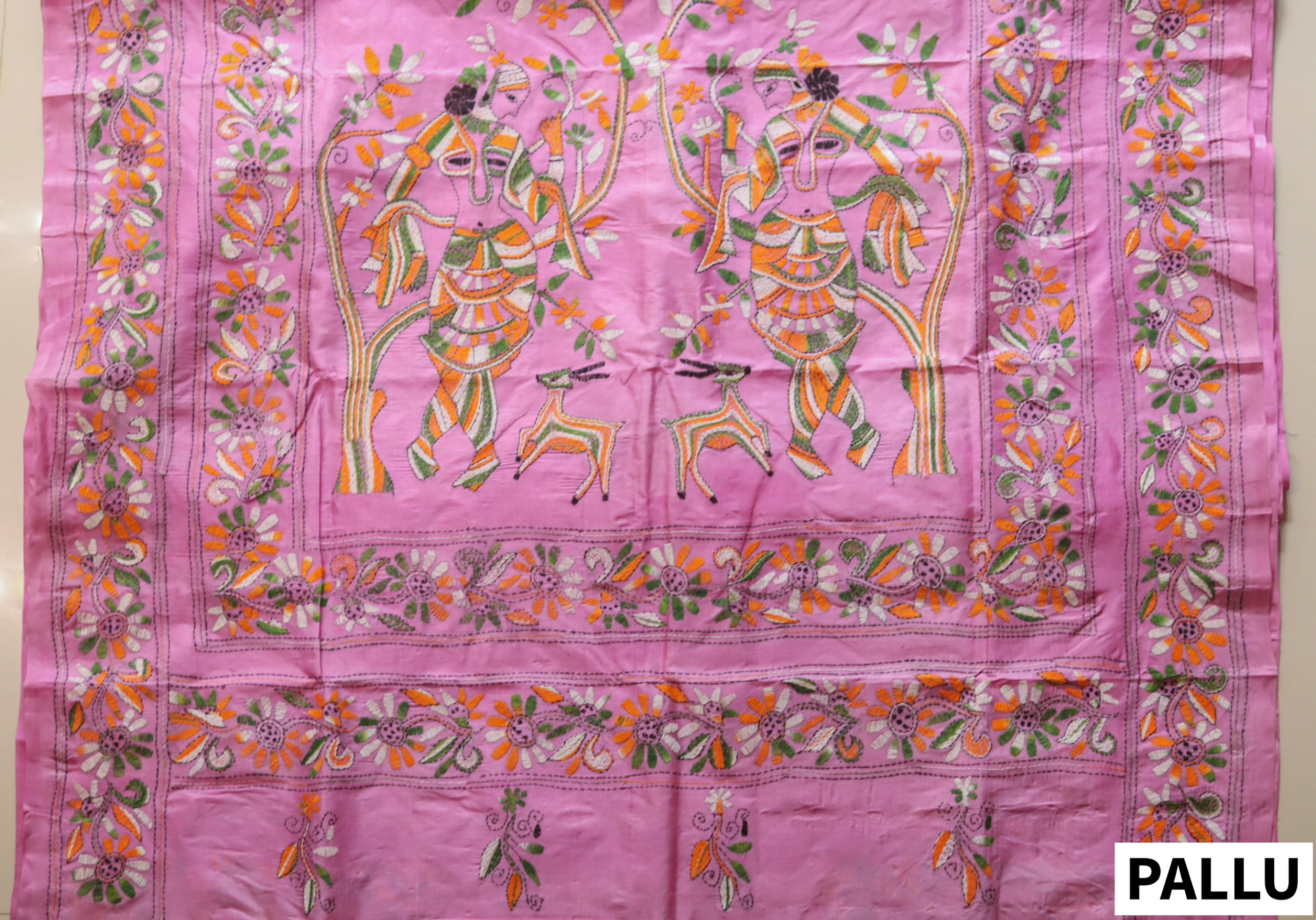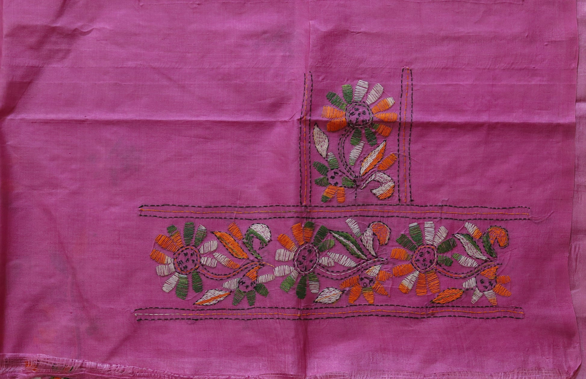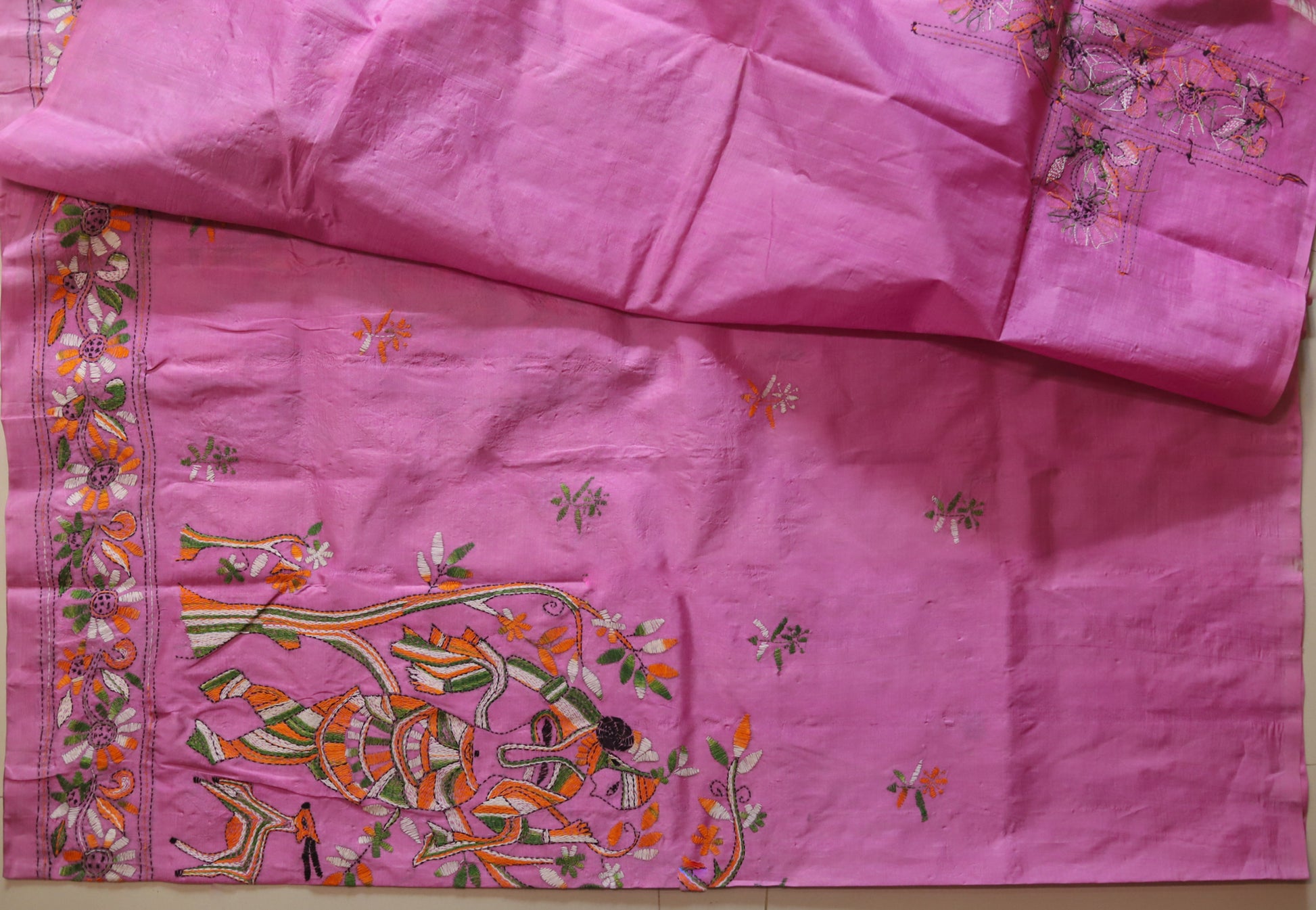 Bengal Hand Embroidery Kantha Stitch Silk Saree