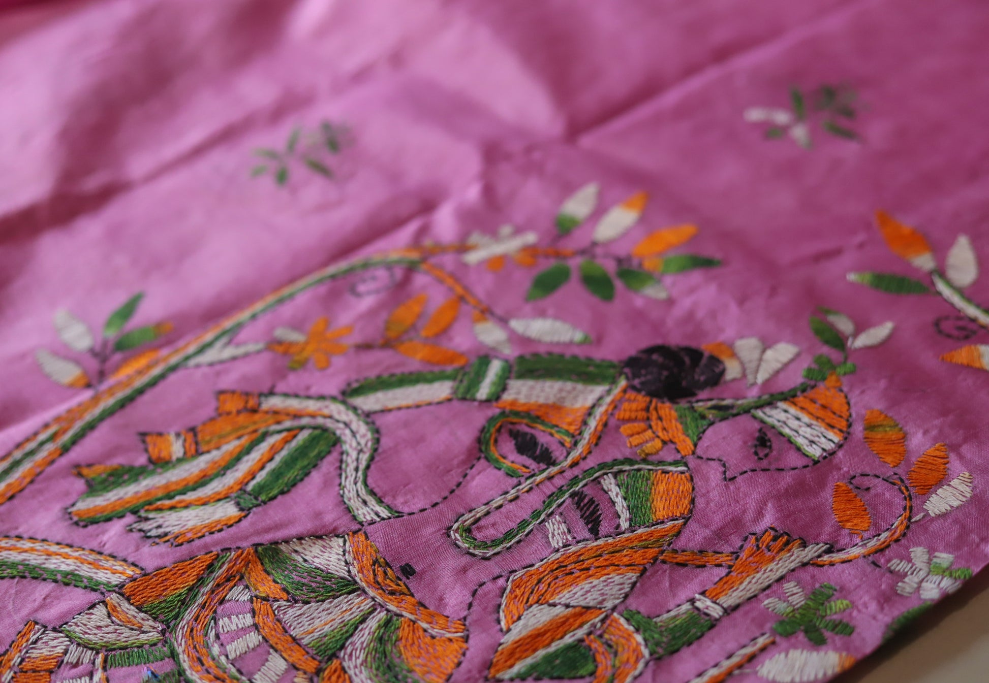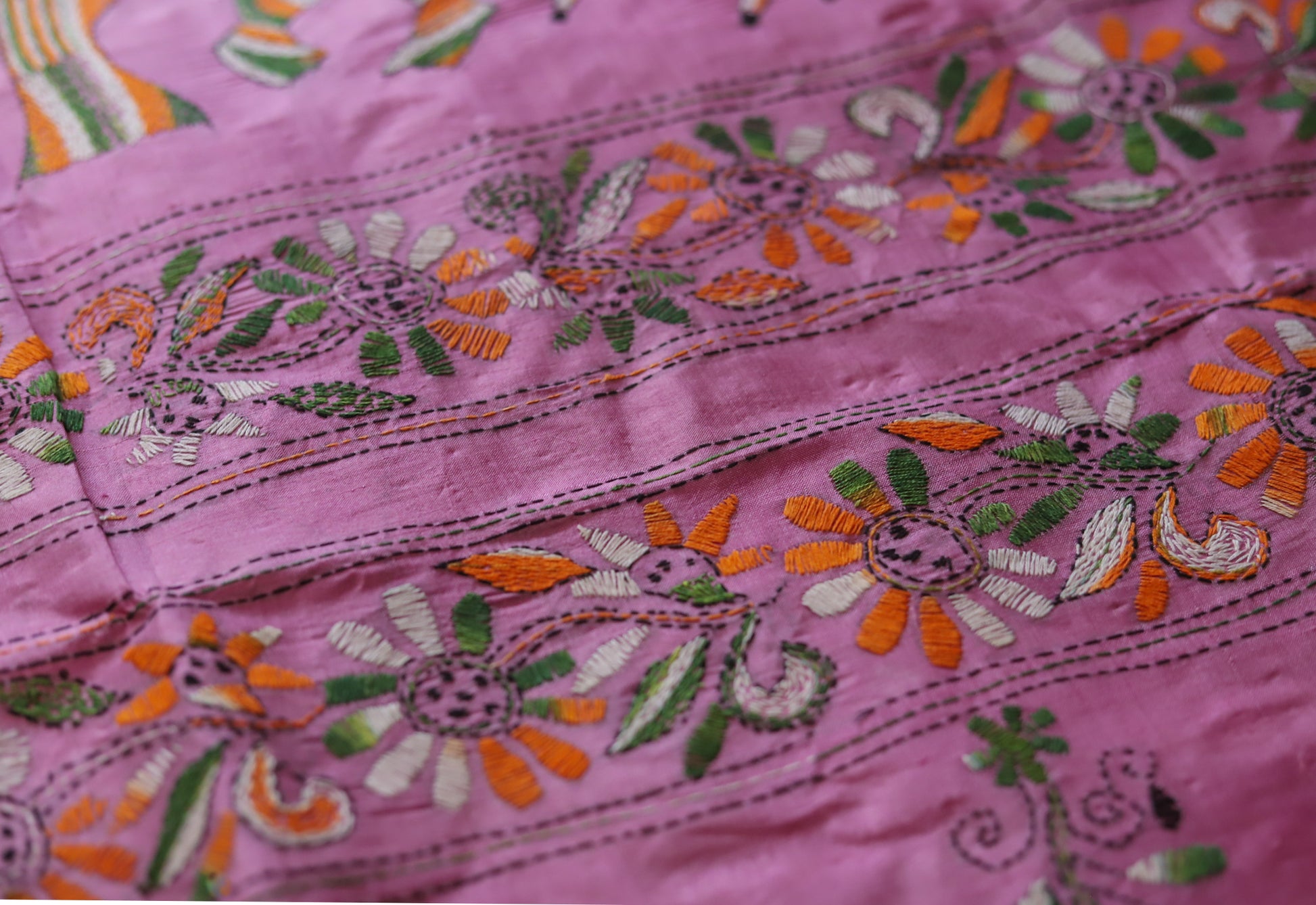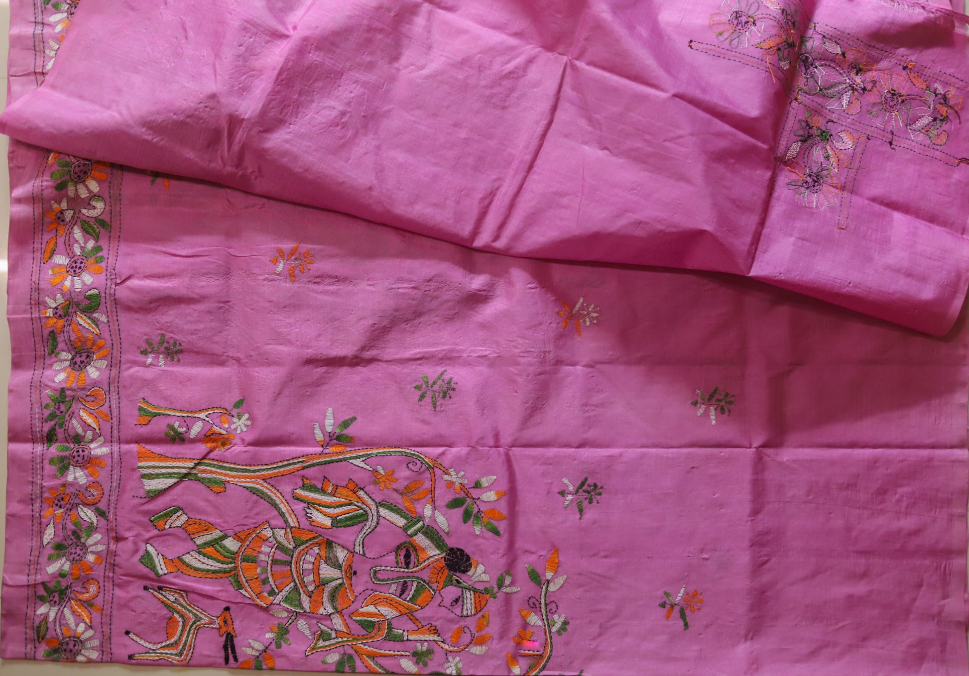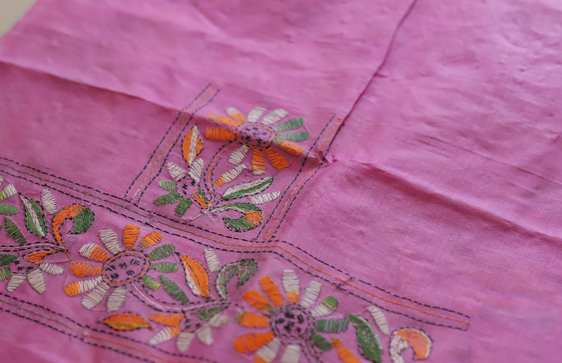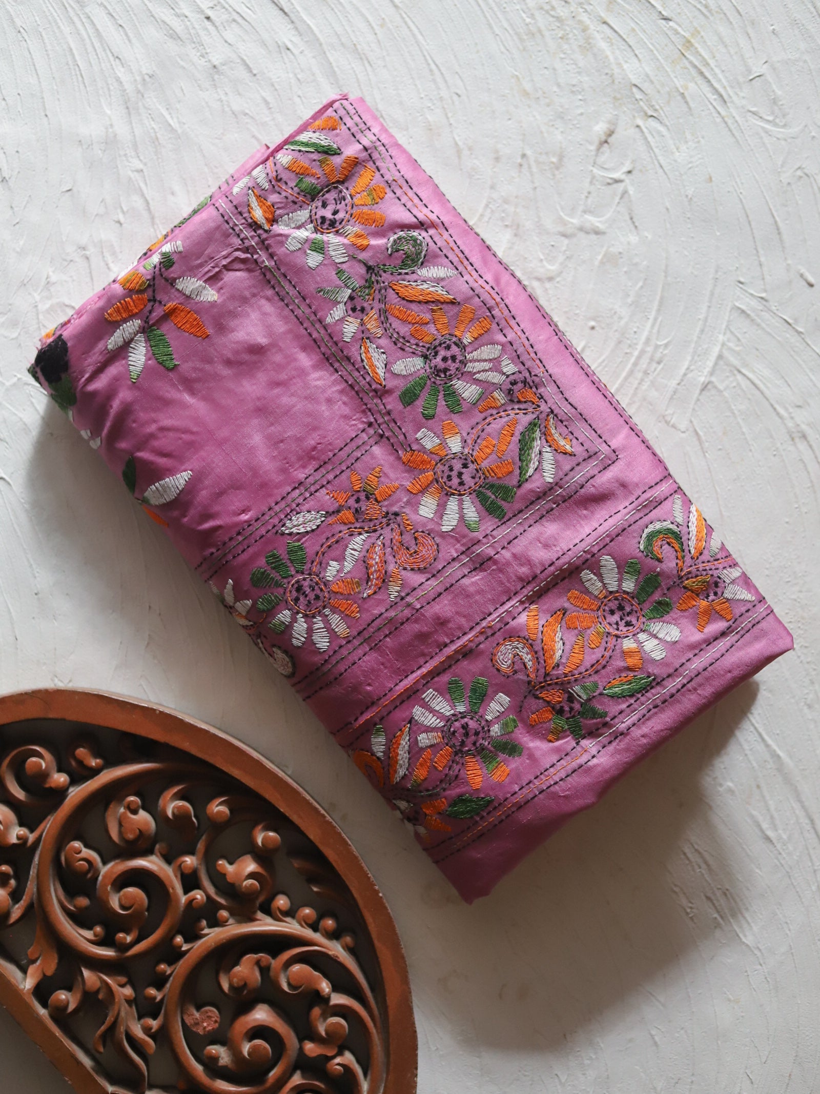 Bengal Hand Embroidery Kantha Stitch Silk Saree