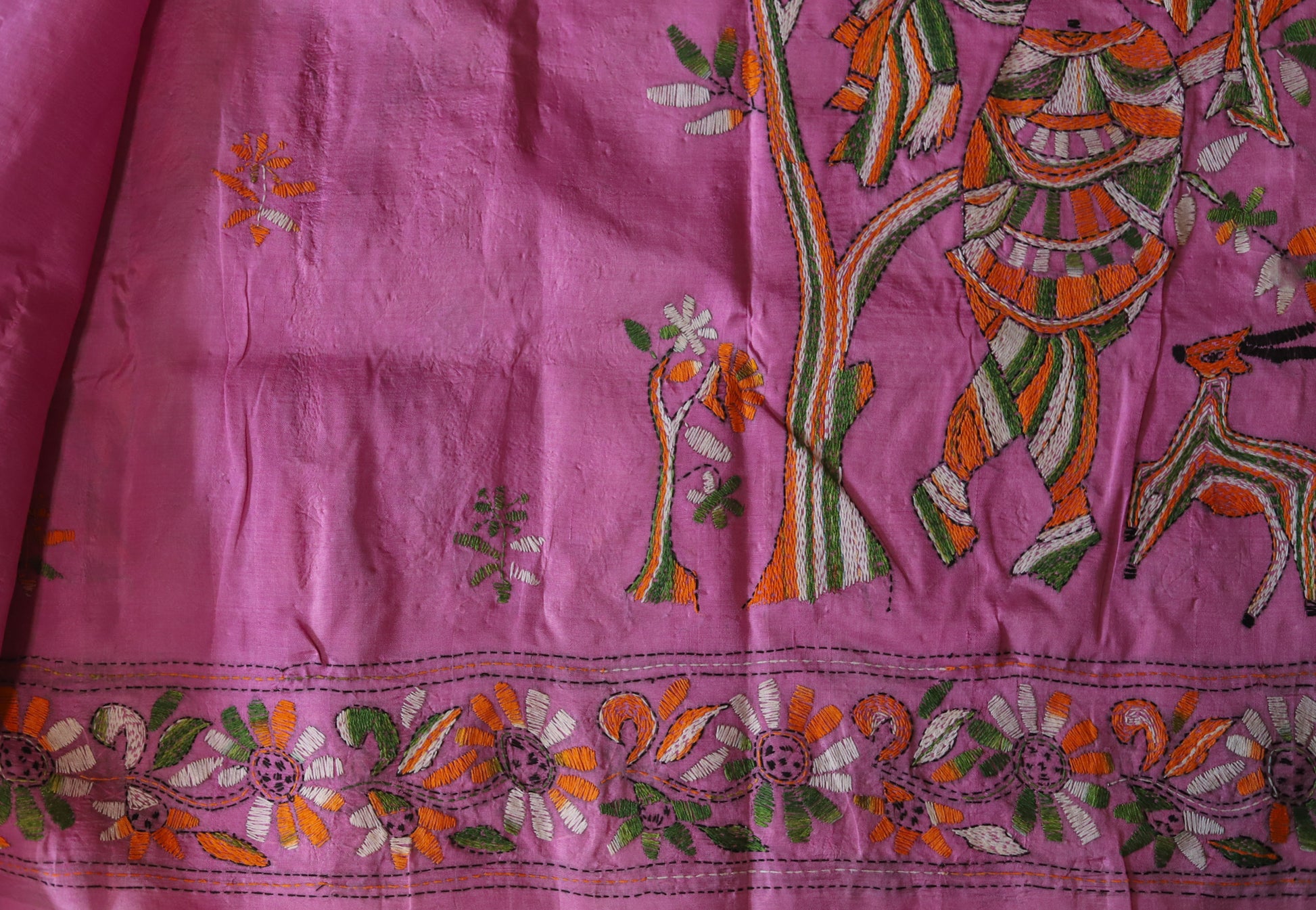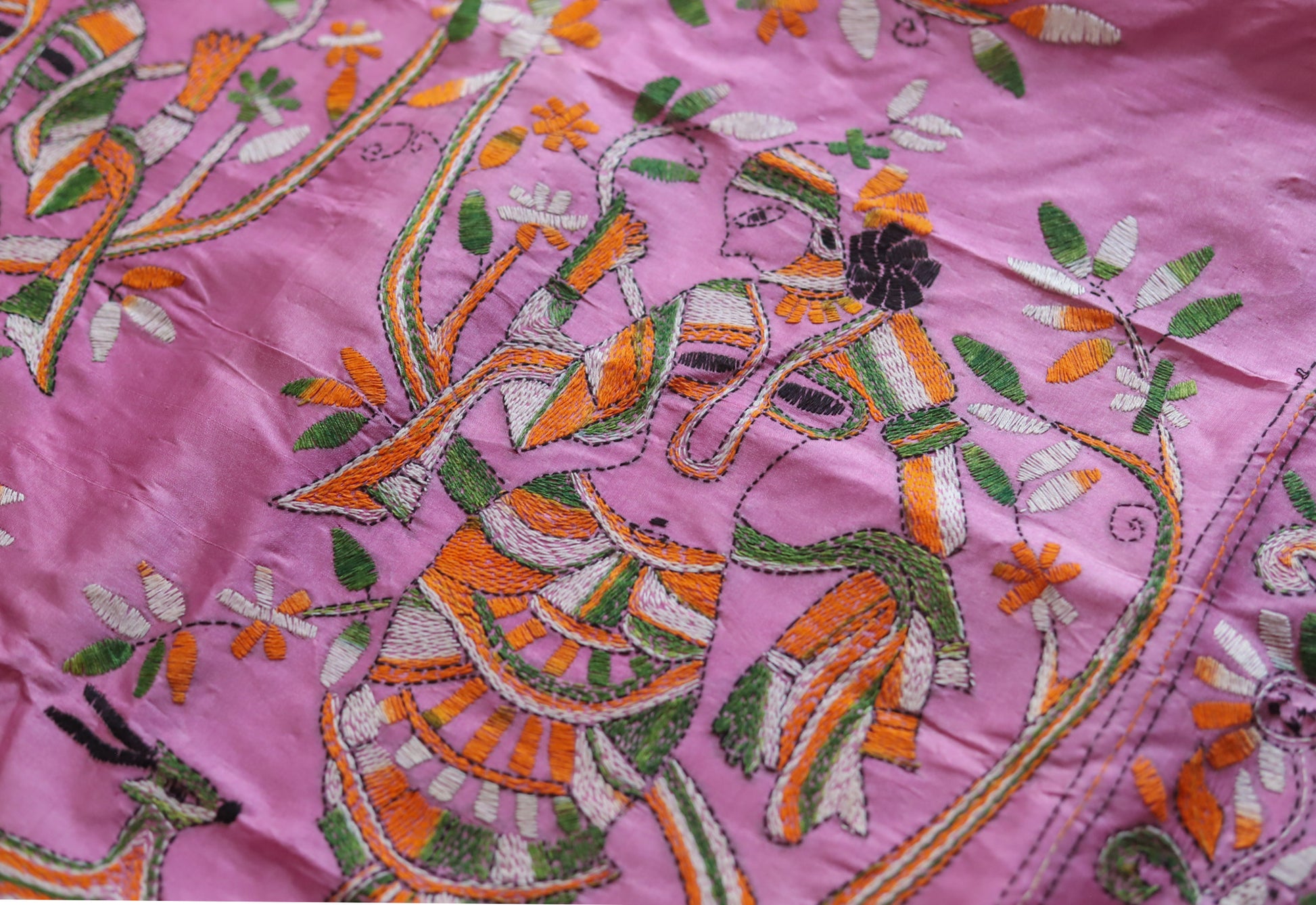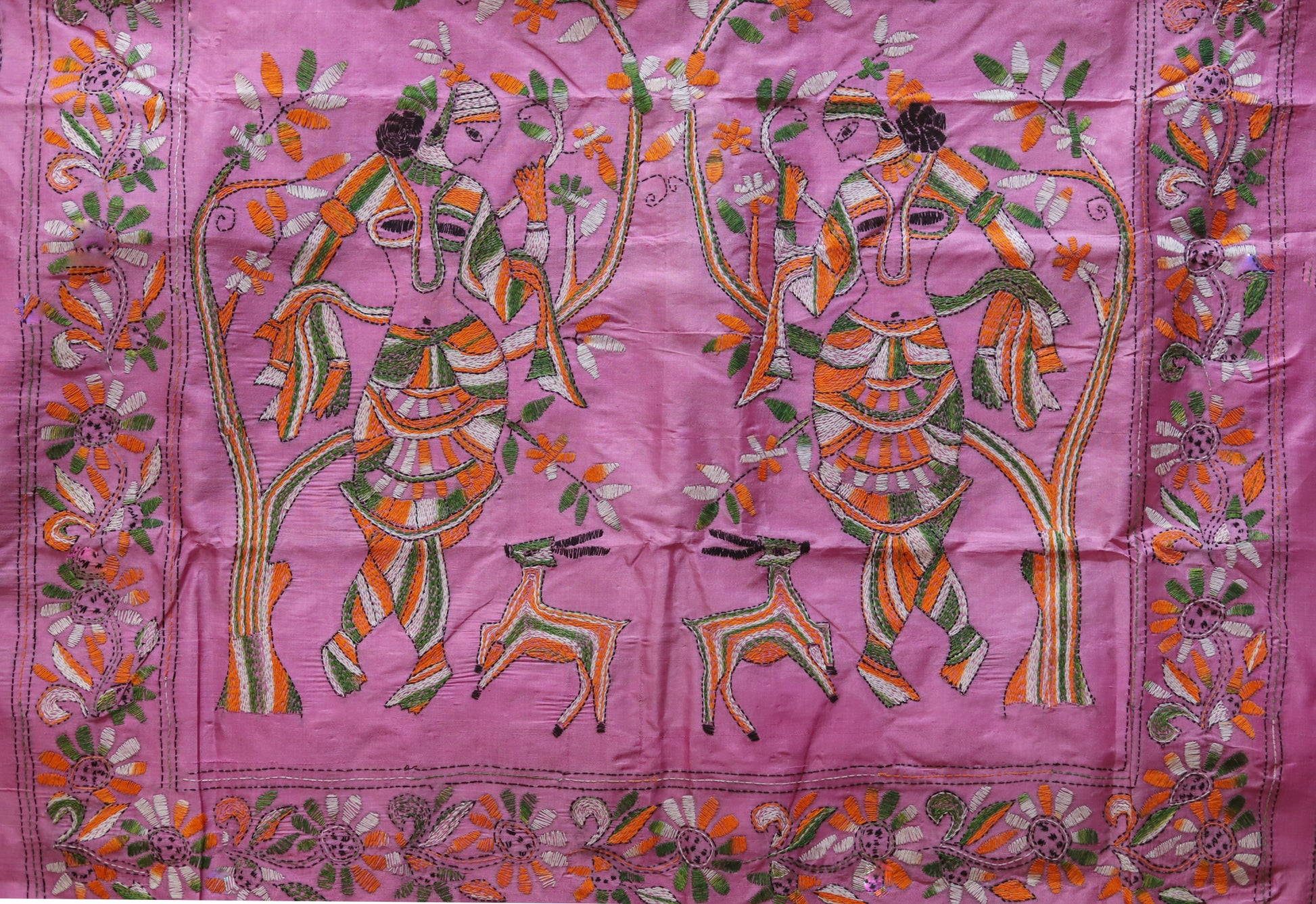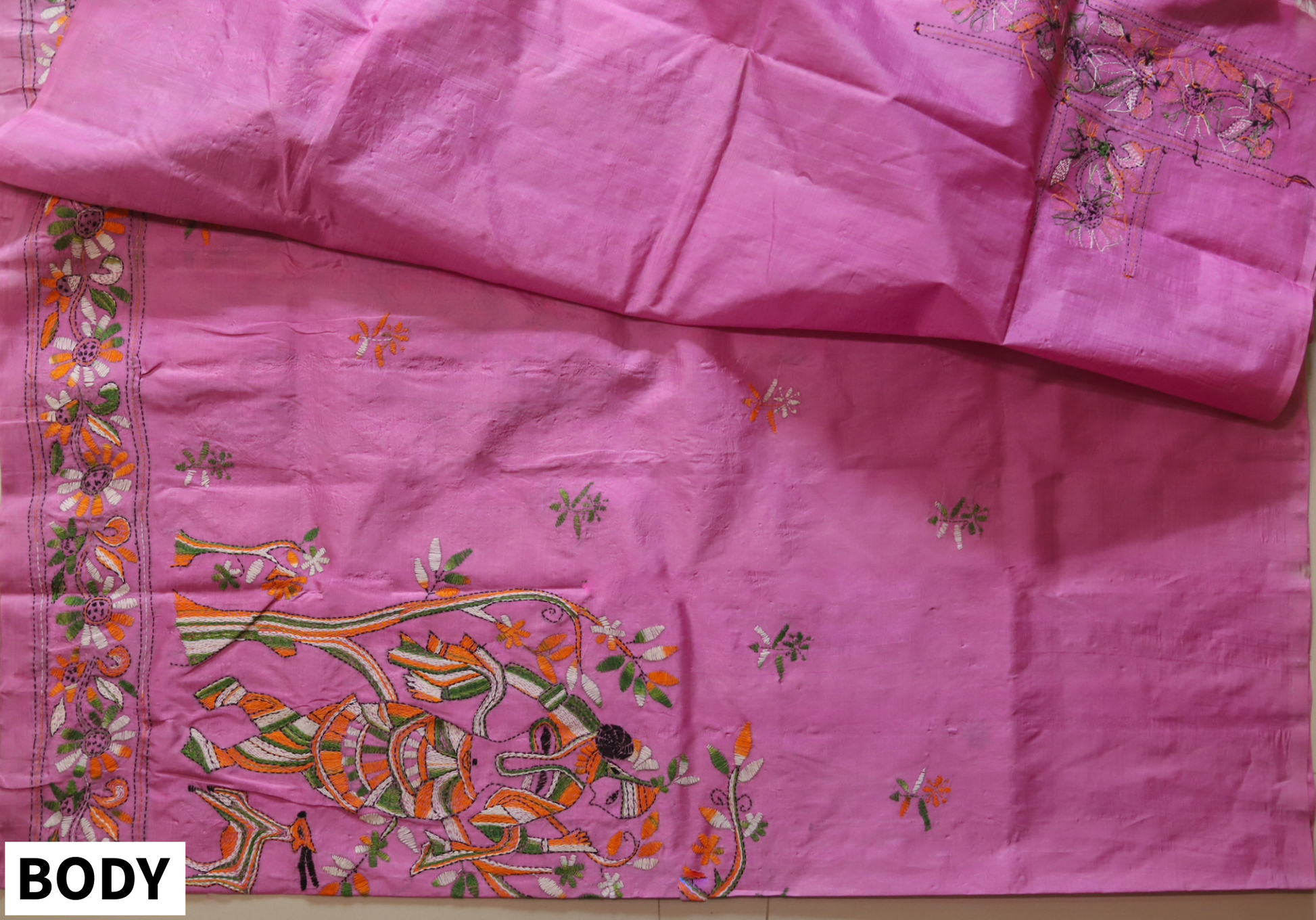 Bengal Hand Embroidery Kantha Stitch Silk Saree