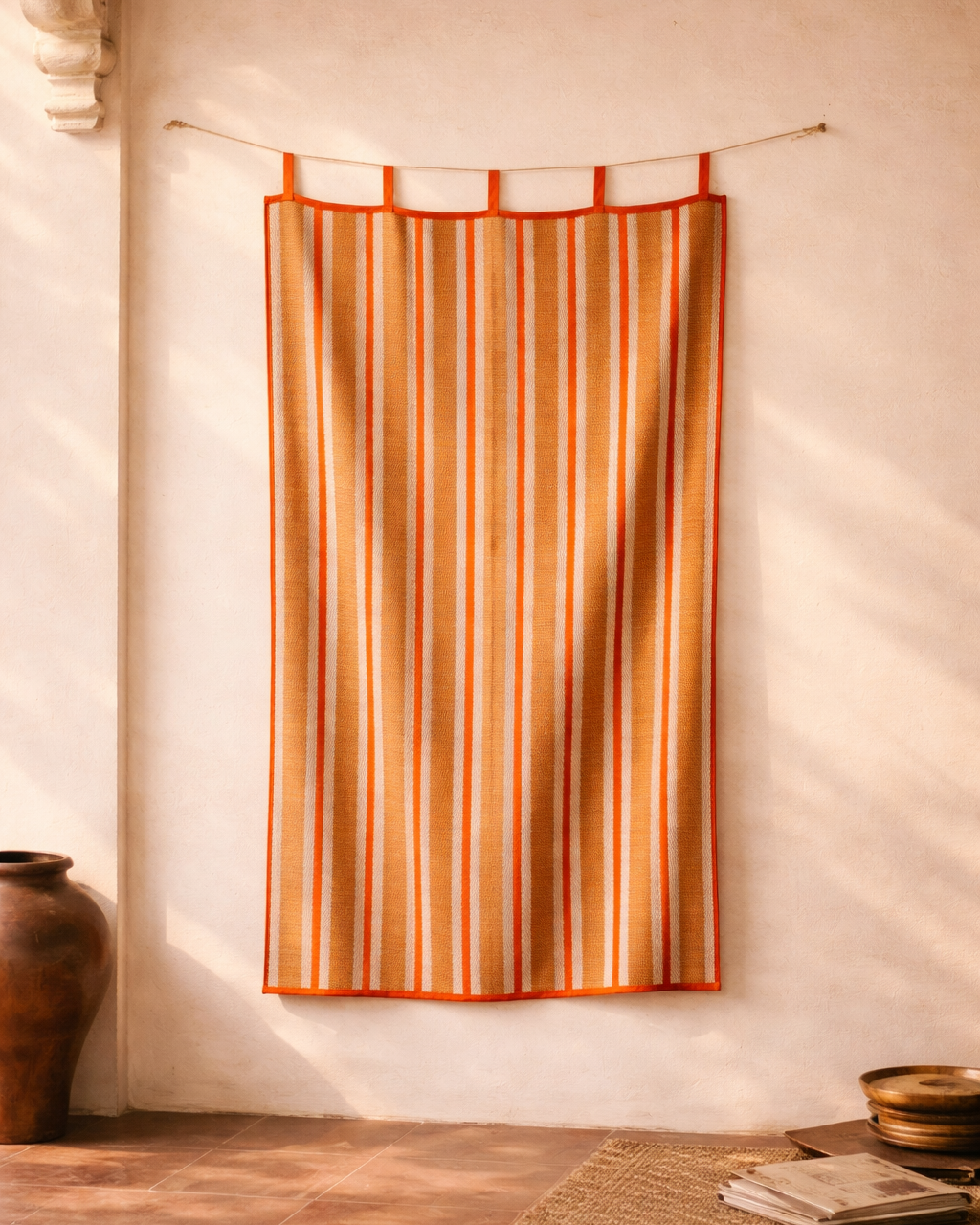 The result is a curtain that balances organic materiality with refined design, bringing warmth, texture, and a sense of calm into interiors. Whether styled in contemporary homes or heritage spaces, PARDA curtains offer a unique interplay of light and shadow, filtering sunlight softly while maintaining privacy. Their neutral tones and handcrafted finish make them versatile effortlessly blending into living rooms, bedrooms, studios, or curated commercial spaces.