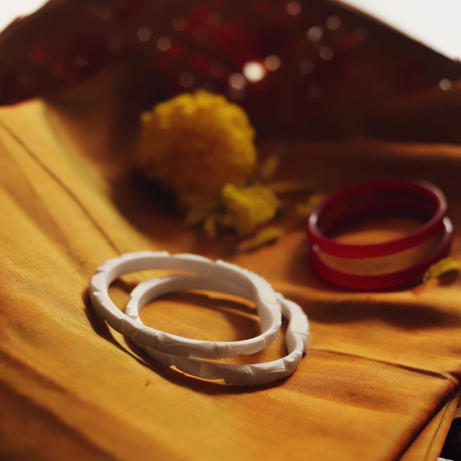 In West Bengal, the term "Shakha" typically refers to a white conch shell bangle. The Shakha is traditionally made from the conch shell found in the Indian Ocean and is worn by married Hindu women, particularly those belonging to the Bengali community. It is worn along with another bangle called the "Pola," which is made of red coral. Together, the Shakha and Bala signify the married status of a woman and are considered auspicious and sacred.