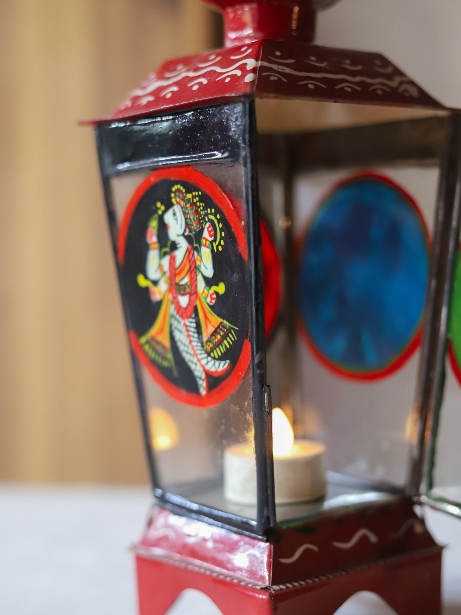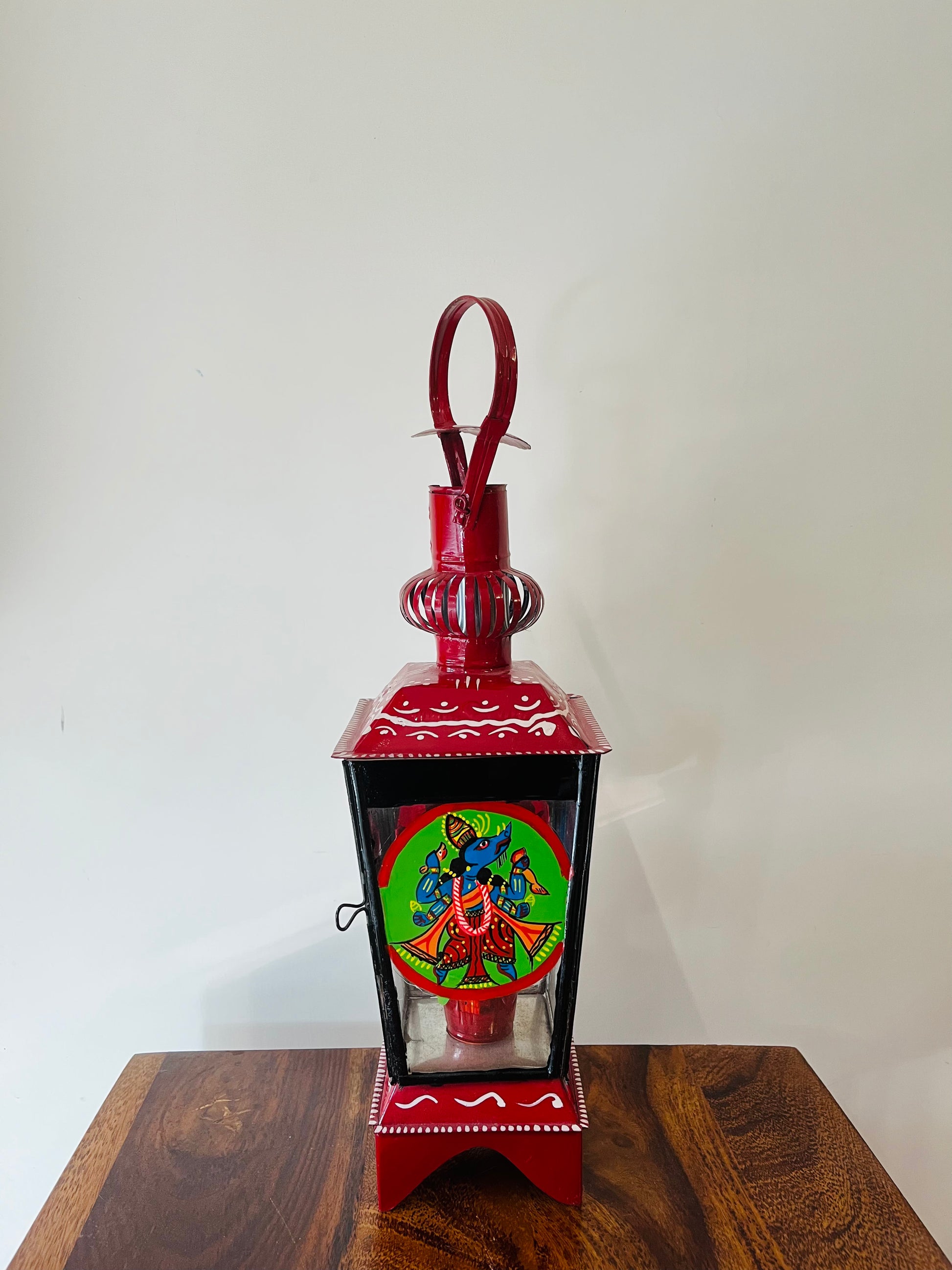 We are sure the fine detailed work of our artisan would astonish you ! This is a hand painted metal and glass lamp with patachitra art. It shows the unmatchable creativity and craftsmanship of the artist in his intricate stokes of patachitra painting turning into a marvellous lamp. Let's make a statement at home with this handcrafted lamp.