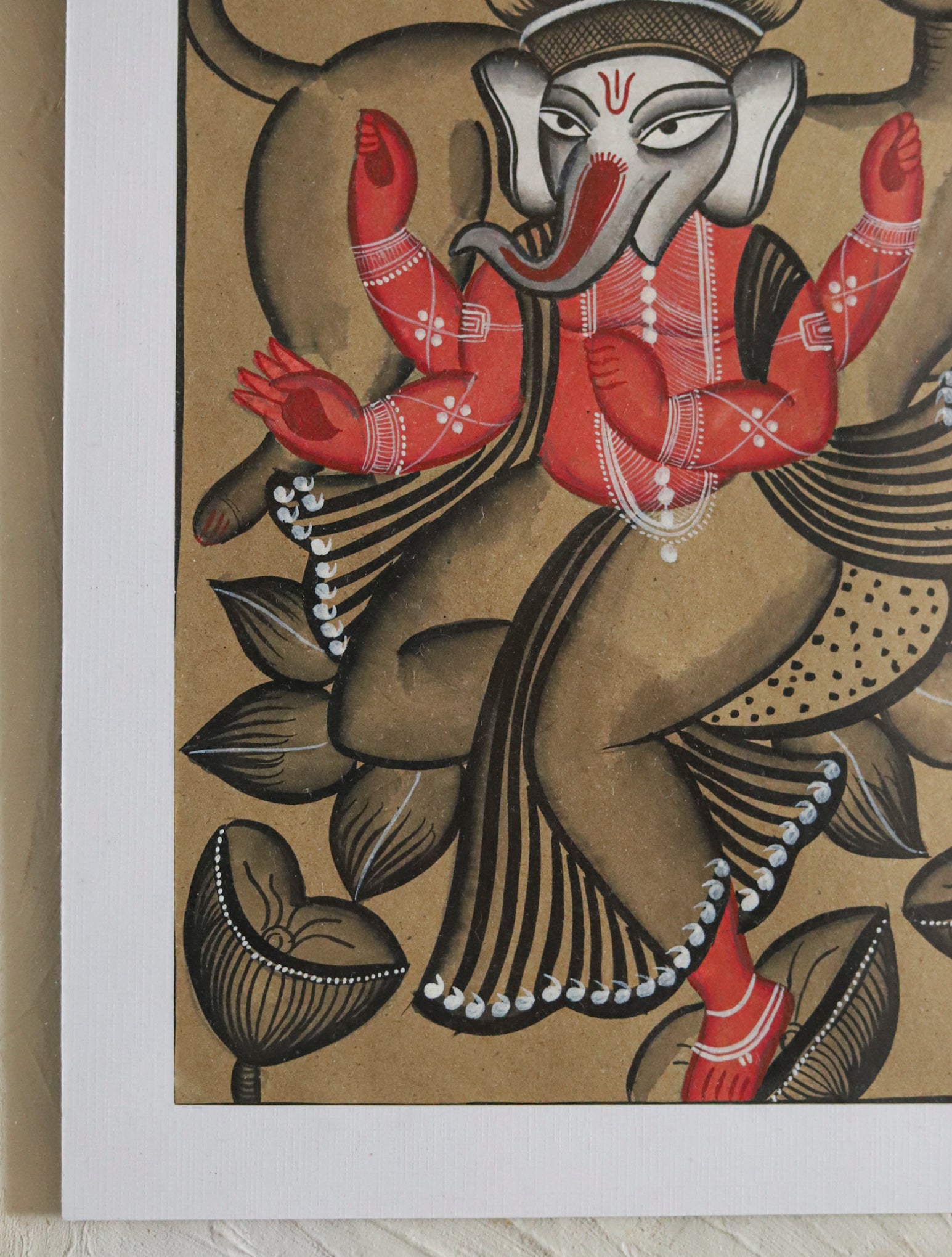 Pattachitra from West Bengal is a hand-painted folk art tradition where Patua artists narrate epics and everyday life through bold lines and luminous colour. Painted on pata, a cloth base primed with natural chalk and plant gums each work is detailed with fine brushes. Themes span Krishna Leela, Durga, village rituals, riverscapes and flora–fauna, often composed as flowing story panels that recall the Patua’s sung scrolls (pater gaan).