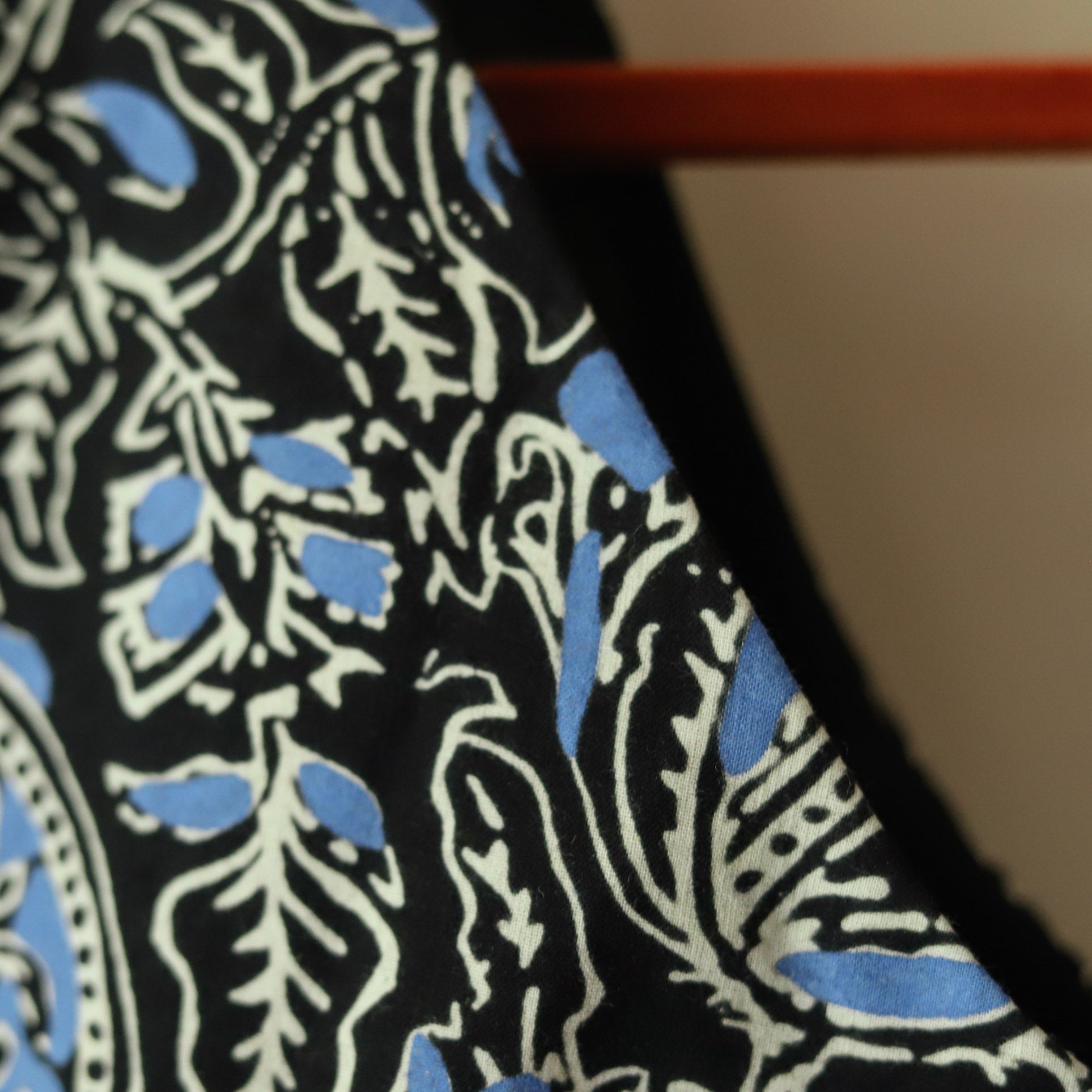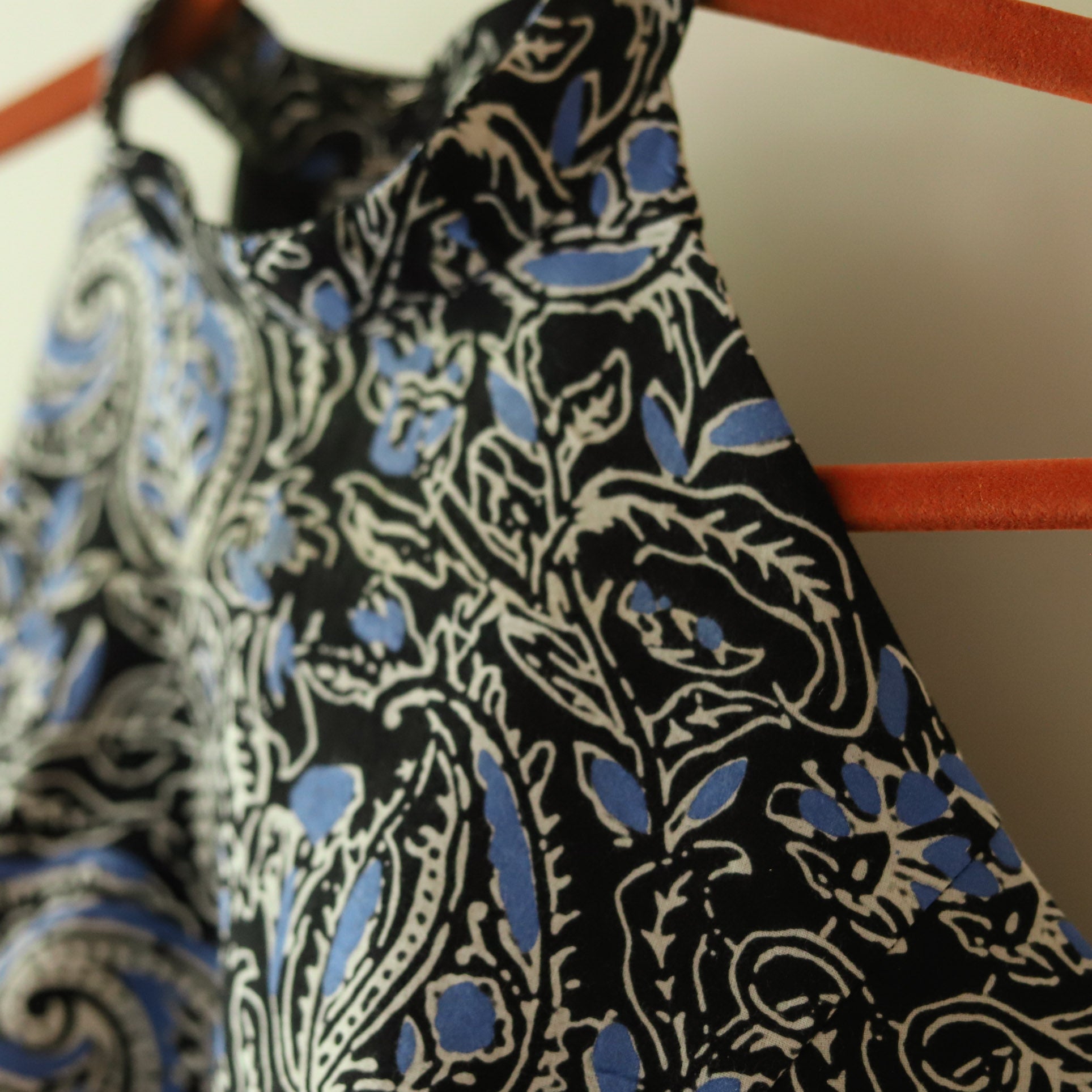 TITLI collection of blouses reminds of light weight with intricate patterns or designs. We present to you Titli blouse which is the best deal you can have as made its solely for you. Its perfect for all the special occasions. Also perfect summer blouse. This blouse has block print of organic dye in pure cotton with halter neck.