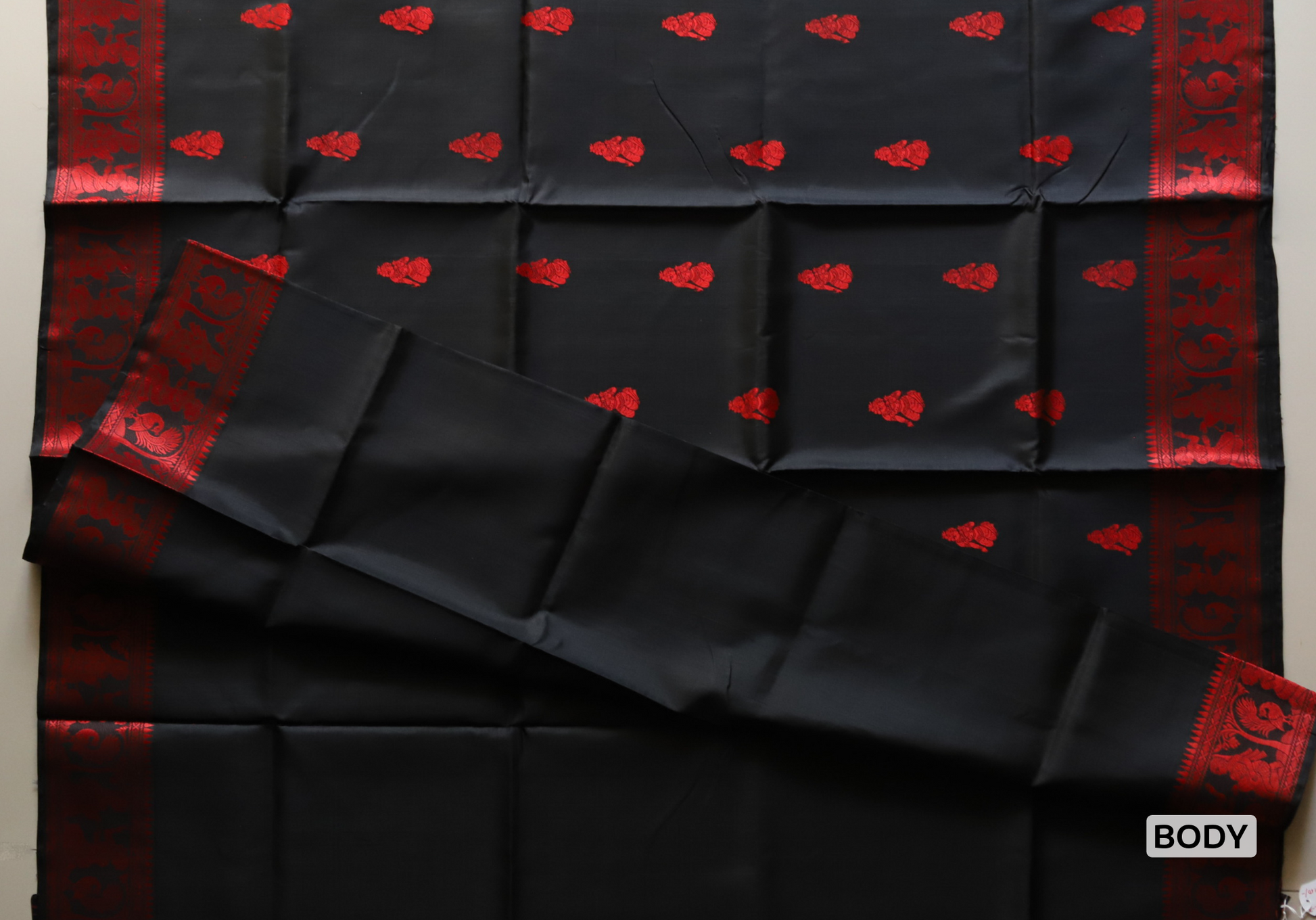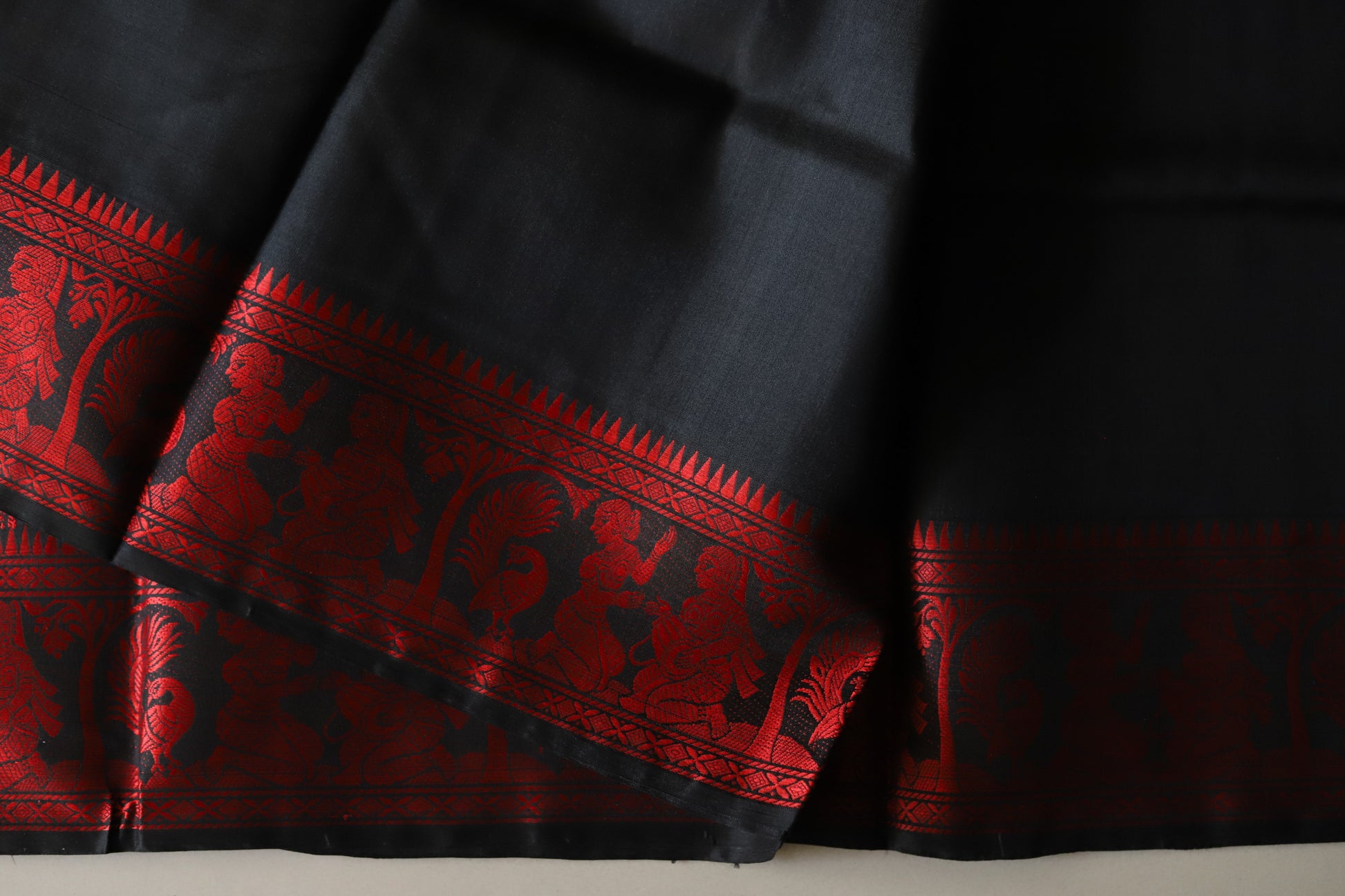 Originating in the 18th century from the historic village of Baluchar in Murshidabad, this weave was patronised by Bengal’s Nawabs and admired by European traders for its sophistication. What makes Baluchari truly iconic is its elaborately woven pallu, depicting narrative scenes from the Ramayana, Mahabharata, temple sculptures, royal courts and mythological motifs, each pallu crafted like miniature storytelling panels on pure silk.