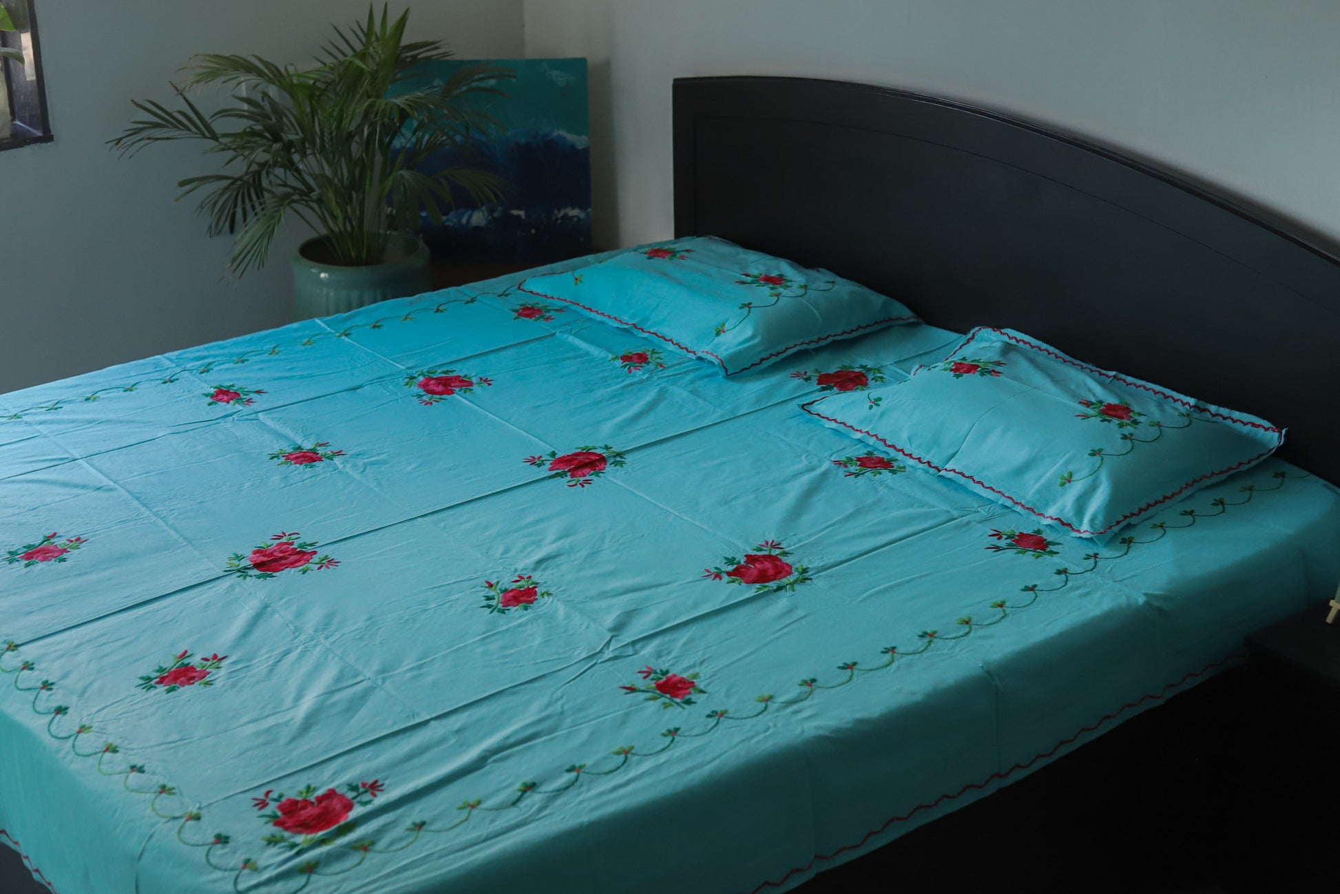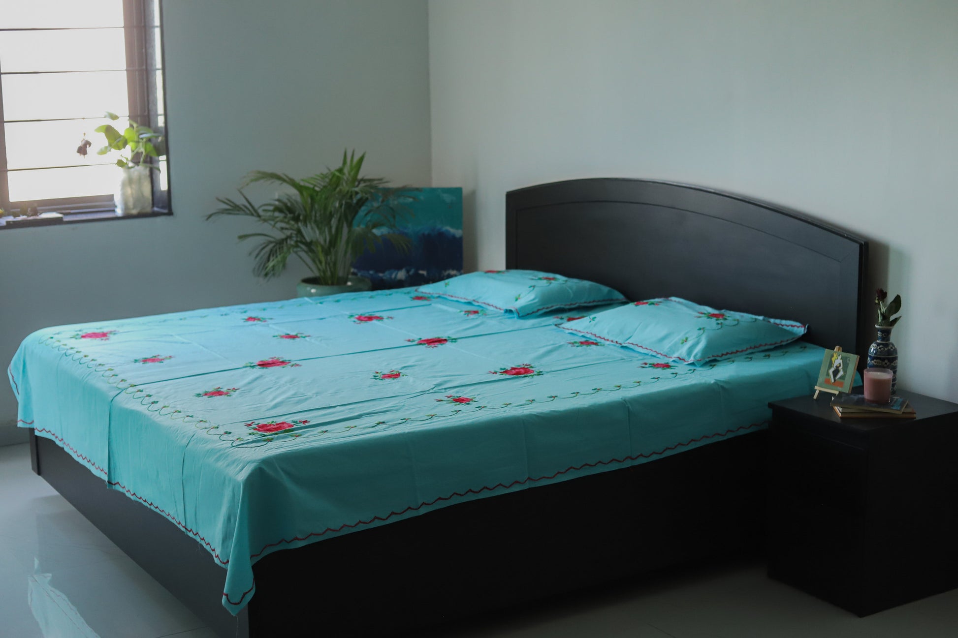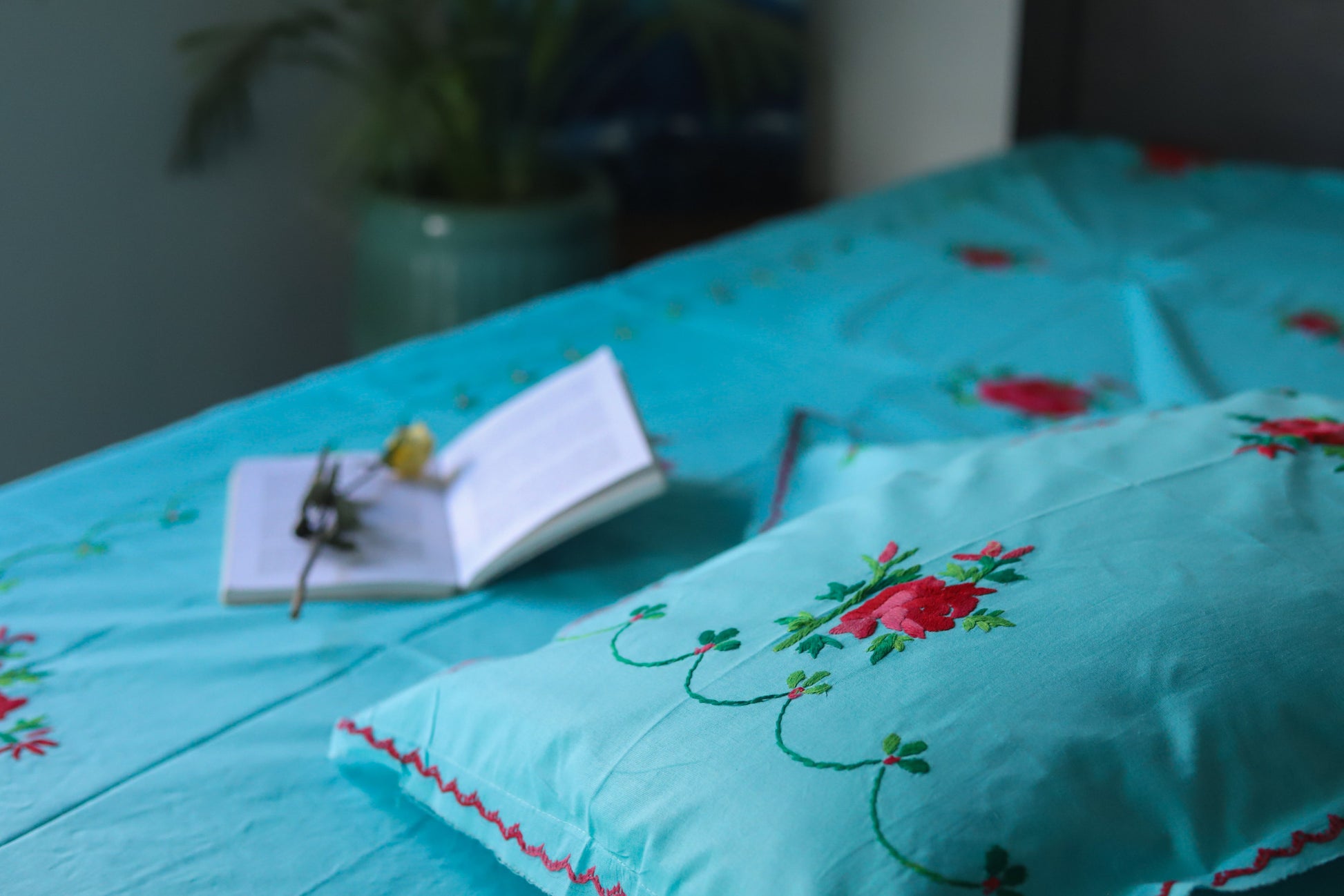 hand embroidery on fabric narrates a story of different tales on mythology, folk, floral, contemporary design, etc. After finishing the household chores for the day, the women would sit together in a group and stitch away with all their love. There is an incredible warmth of pure cotton bedsheet with delicate stitches running all across it. A labour of several days, a bedsheet is handcrafted and every single one is hence a result of incredible patience and craft.