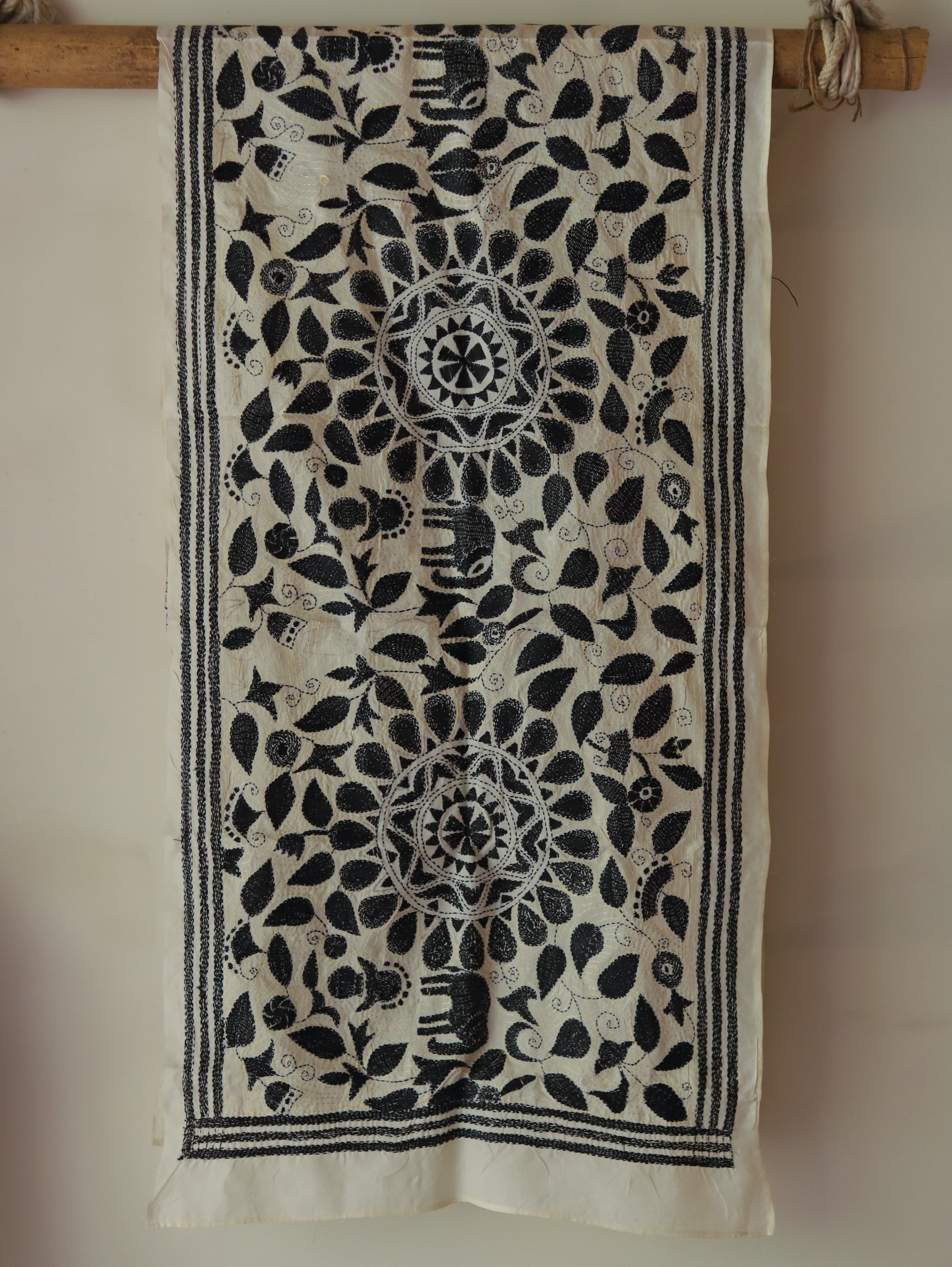 Bengal Hand Embroidery Kantha Stitch Silk Stole