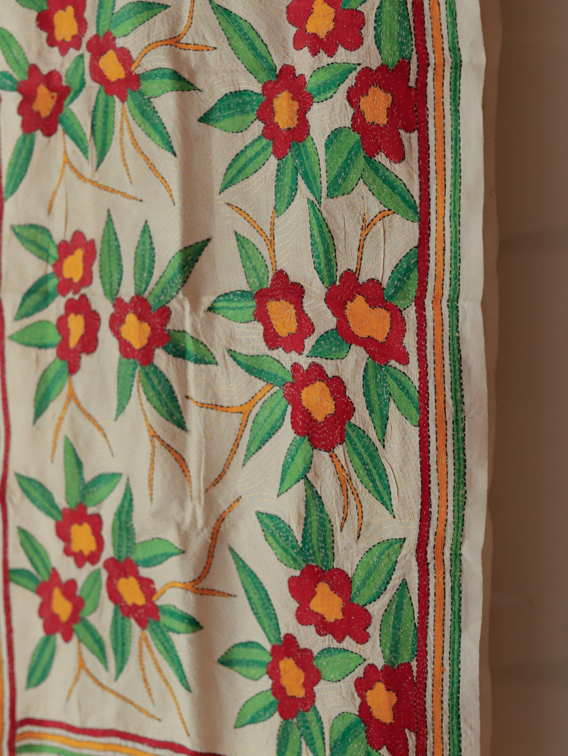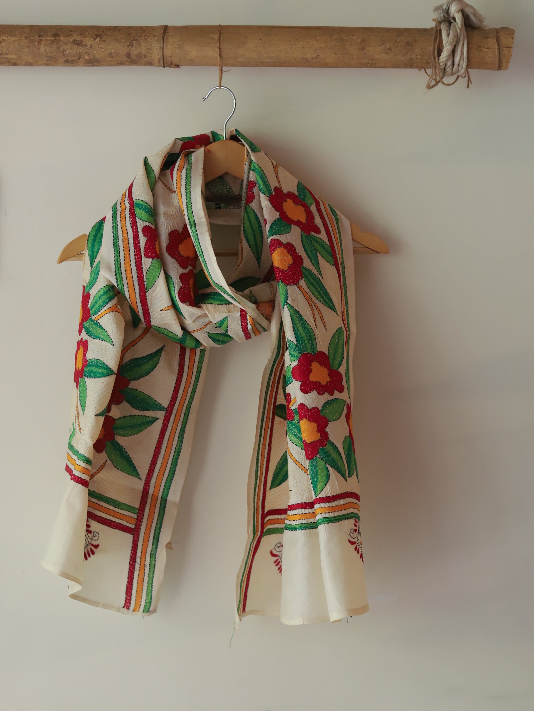 Bengal Hand Embroidery Kantha Stitch Silk Stole