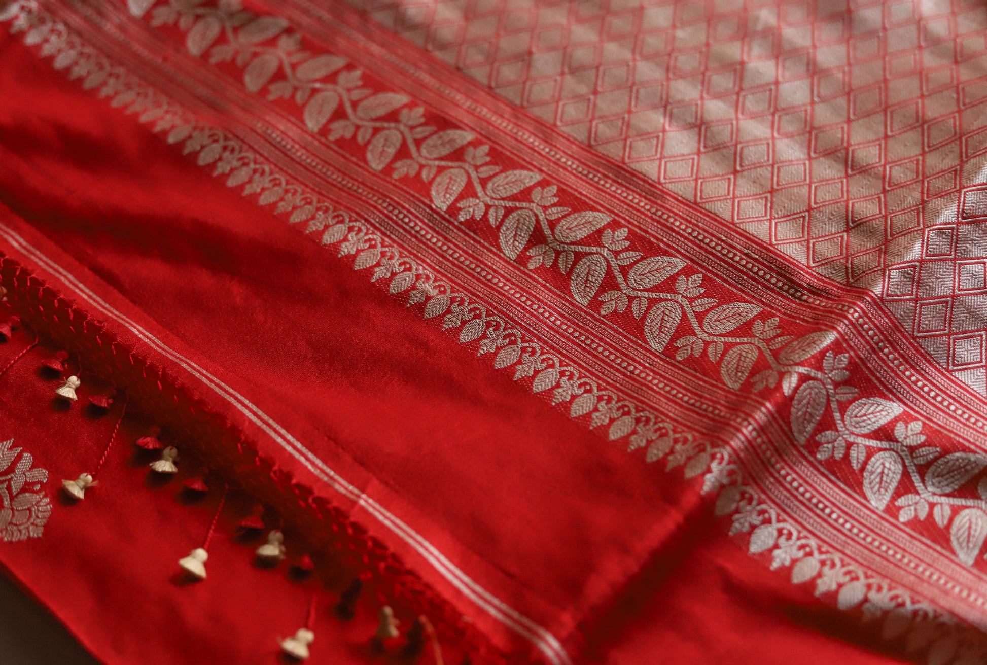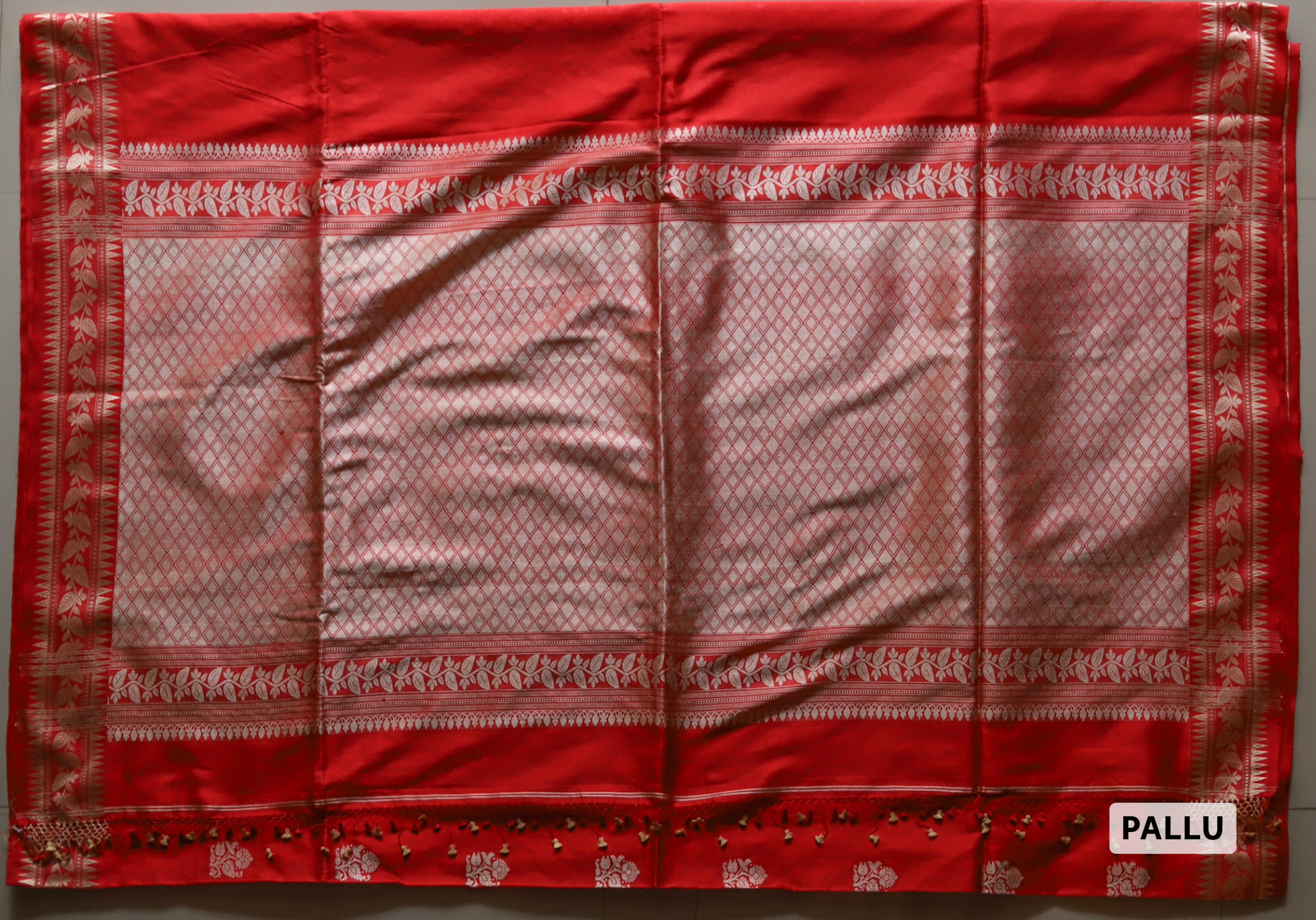 Originating from the legendary weaving hubs of Varanasi, the Benarasi saree stands as one of India’s most revered textile traditions, an art form cherished for centuries and celebrated for its unparalleled opulence. Woven meticulously on handlooms using the finest mulberry silk, the Benarasi saree embodies the grandeur of classical Indian brocade, where silk yarns interlace with zari to create richly textured patterns. Patronised historically by Mughal courts and admired across Europe and Asia for its luxurious workmanship, the Benarasi weave is defined by its exquisite brocaded motifs, floral jaal patterns, Mughal-inspired vines, lattices, and intricately woven borders each panel shimmering like a crafted tapestry of tradition and artistry.