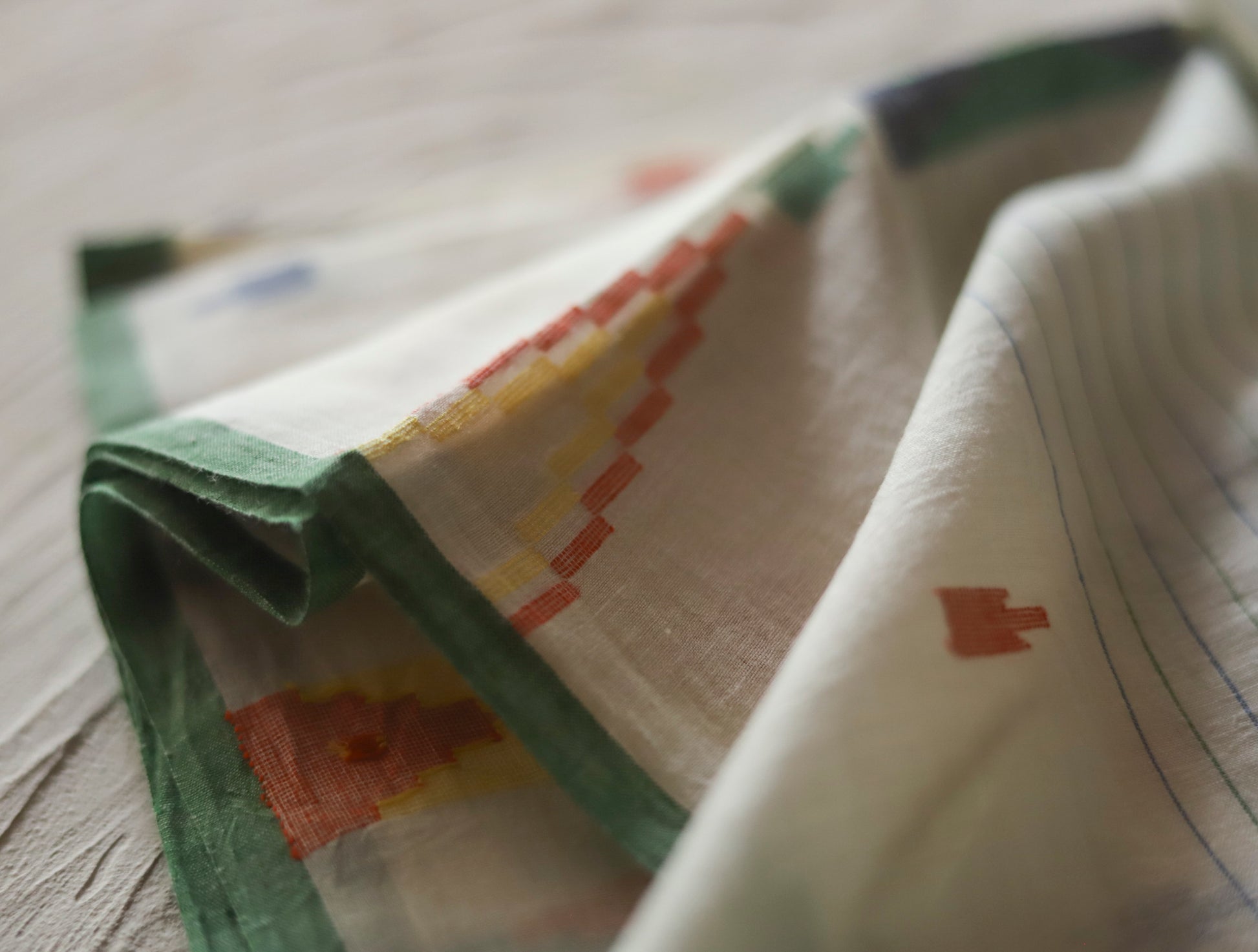 Bengal's Handwoven Cotton Fabric/ Yardage in Jamdani design