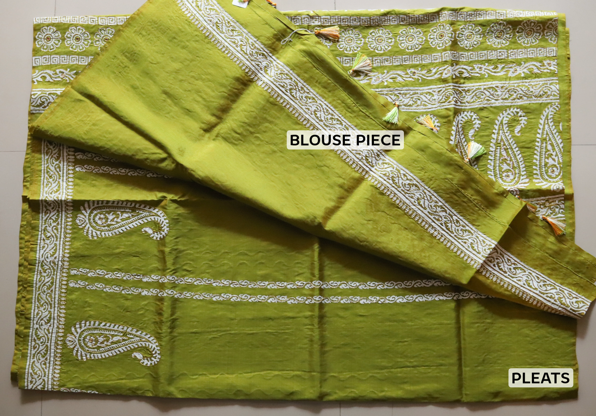 PARAMA in Handwoven Mulberry Silk Saree by BONGONIKETAN is a one-of-a-kind Bengal masterpiece, meticulously crafted on traditional handlooms using the finest mulberry silk yarns for a luxurious yet featherlight drape. Each saree is enriched with intricate hand-block prints and elevated by delicate Kantha stitch embroidery, crafted by skilled women artisans of West Bengal. Available online at www.bongoniketan.in or at our India store, every piece blends timeless Calcutta craftsmanship with contemporary colour stories. An heirloom of Bengal heritage you can wear with complete confidence. Enjoy free India-wide shipping, secure checkout, and guaranteed authenticity.