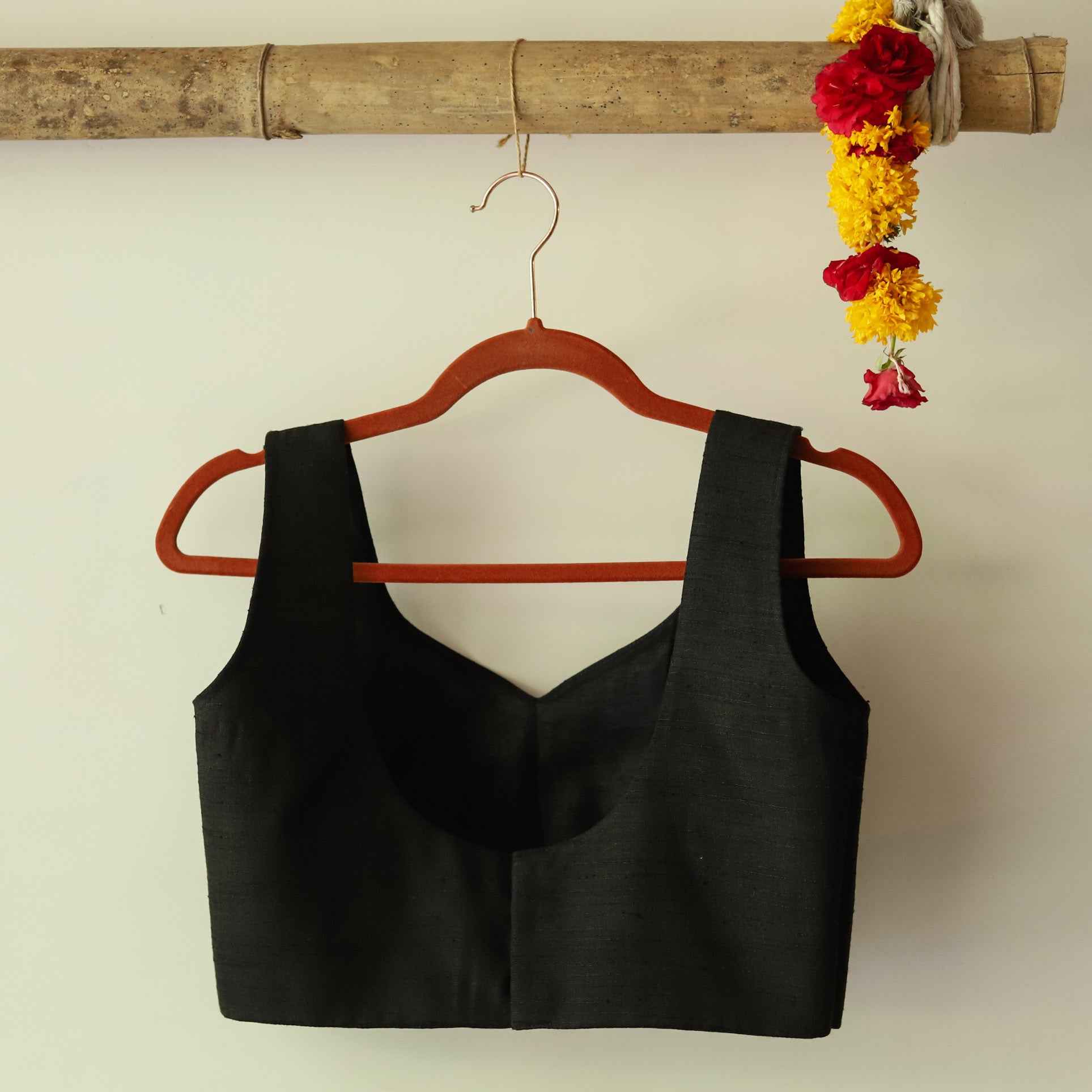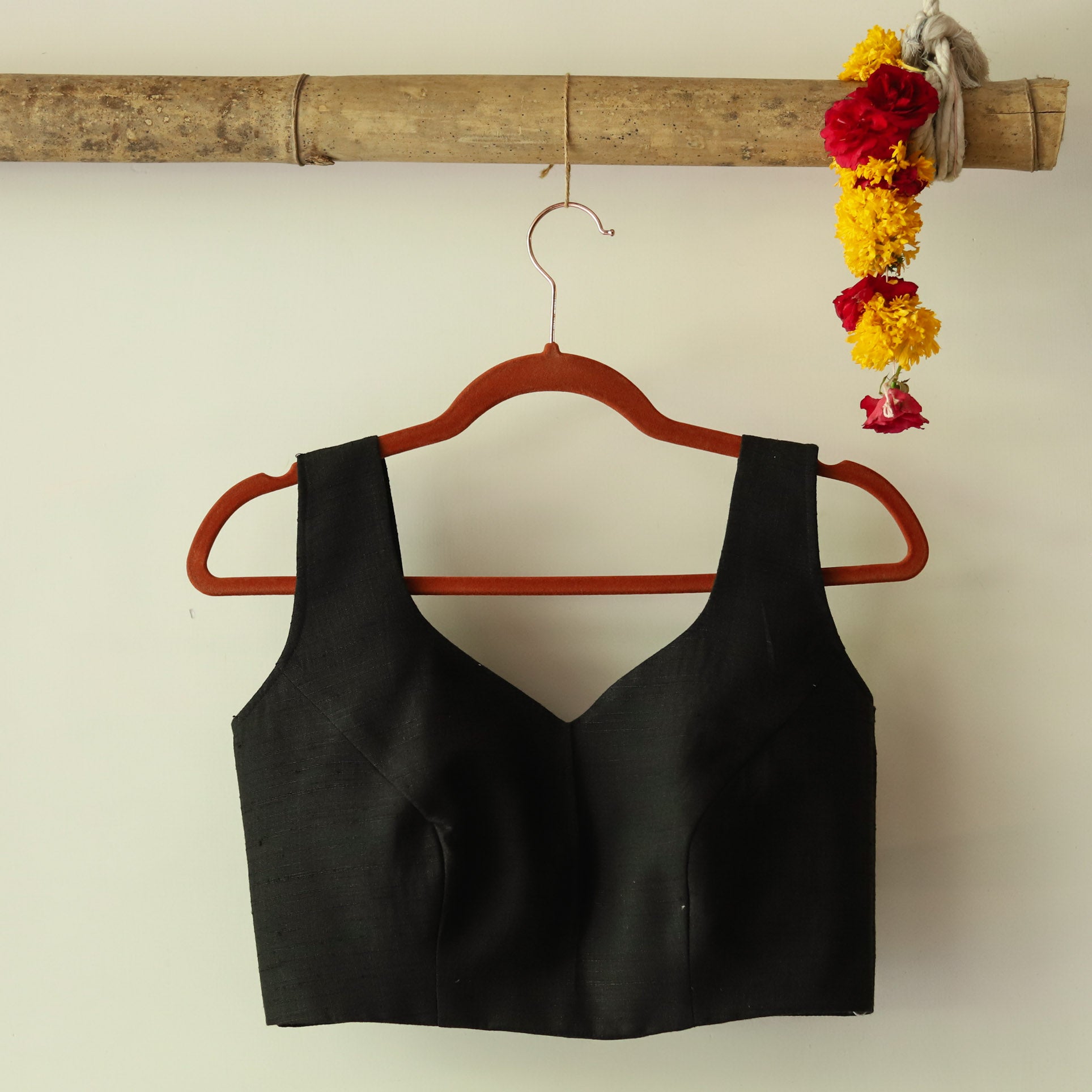TITLI collection of blouses reminds of light weight with intricate patterns or designs. We present to you Titli blouse which is the best deal you can have as made its solely for you. Its perfect for all the special occasions. Also perfect summer blouse. This blouse is elegant, simple and versitile in raw silk fabric and can it paired with any sari.